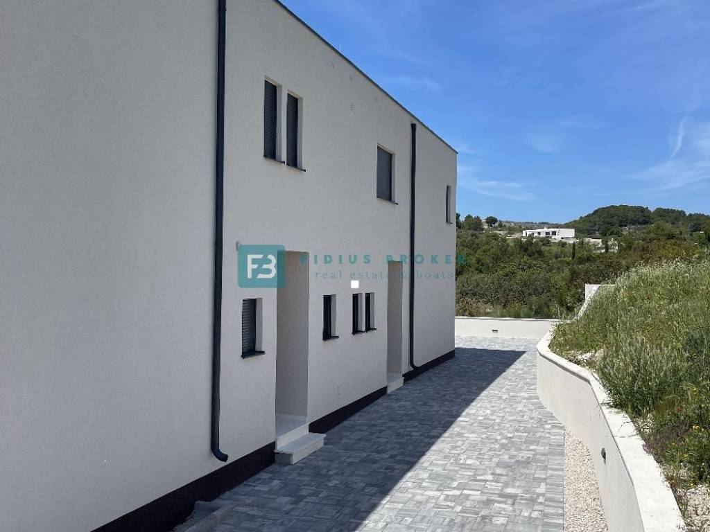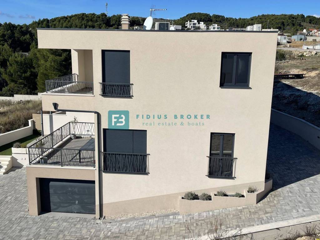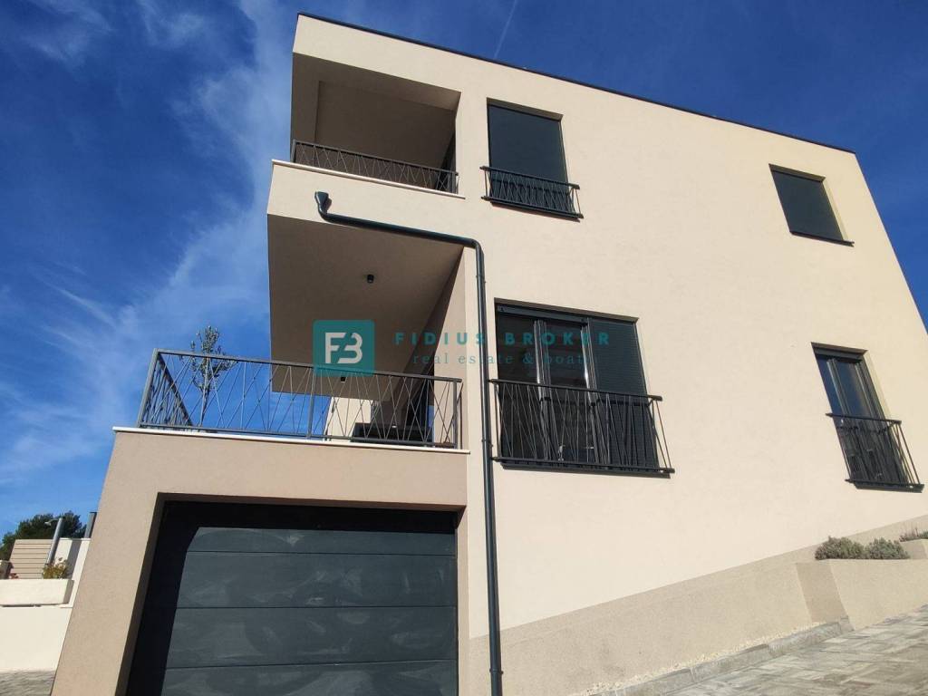 The property is located in a very quiet part of town and is located on a hill, and has a panoramic view of the sea and the city. It is located in a dead end street, which ensures peace and privacy. At a distance of 700 m from the center and 800 m from the beach, it allows you to get away from the city crowds and stress, and yet you are only a few minutes away from all the amenities that Vodice offers. The advantage of this property is the three-story layout that provides additional privacy and makes the living space more functional and comfortable. The orientation is east-south-west. The house has its own yard, garage and outdoor parking space.