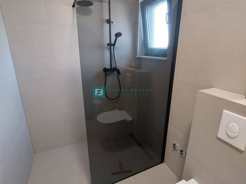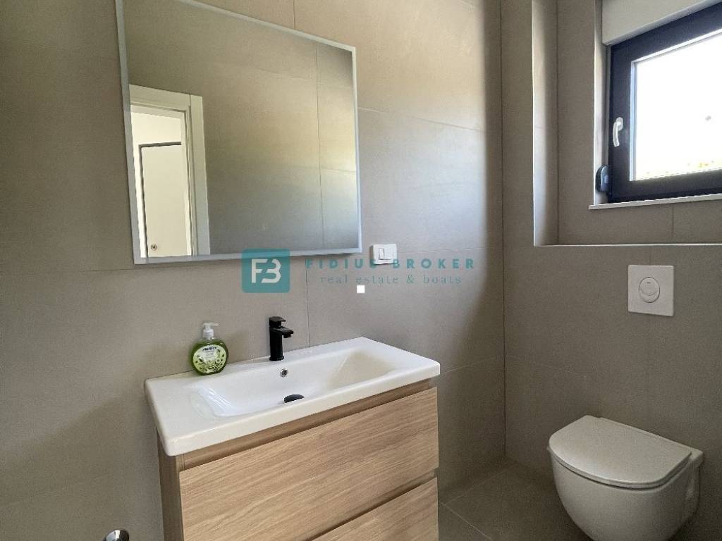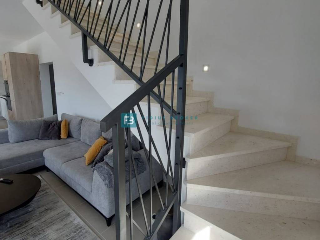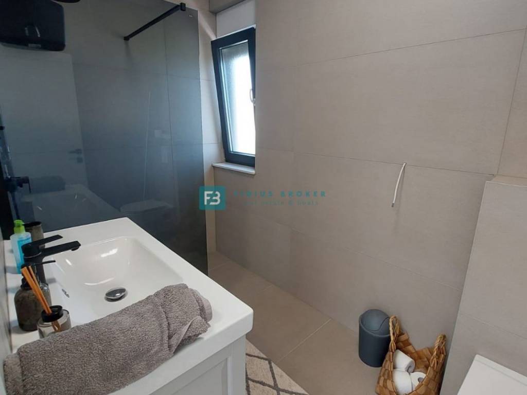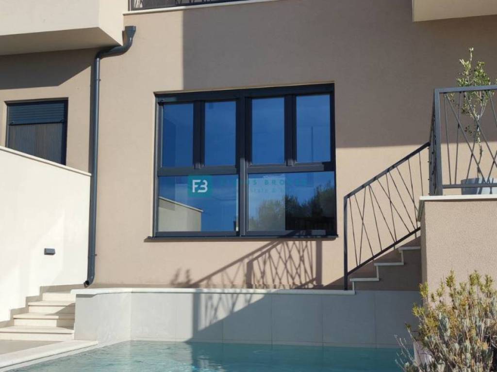 House S2 with a usable area of ​​192 m2 + garage 40 m2 + yard 25 m2 + garden 40 m2 + swimming pool 13 m2 + parking 12.50 m2 has three floors: basement + ground floor + 1st floor. In the basement there is a garage and a spacious storage room. The ground floor consists of a covered entrance area, toilet, bedroom, bathroom, kitchen, dining room and living room with access to a terrace connected to the swimming pool and a beautifully landscaped garden. An internal staircase leads to the first floor, where there are three comfortable bedrooms, two bathrooms and two terraces with a panoramic view of the sea. The house is well built and equipped. Among the equipment we highlight: polystyrene facade, security doors, high-quality PVC joinery, ALU electric shutters with mosquito nets, modern coupon sanitary ware, top quality ceramic floors, underfloor heating in all rooms via a heat pump, air conditioners in each room, glass railings on the terraces.