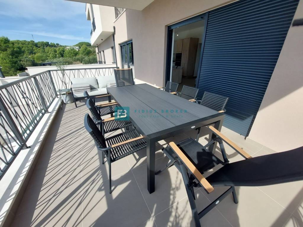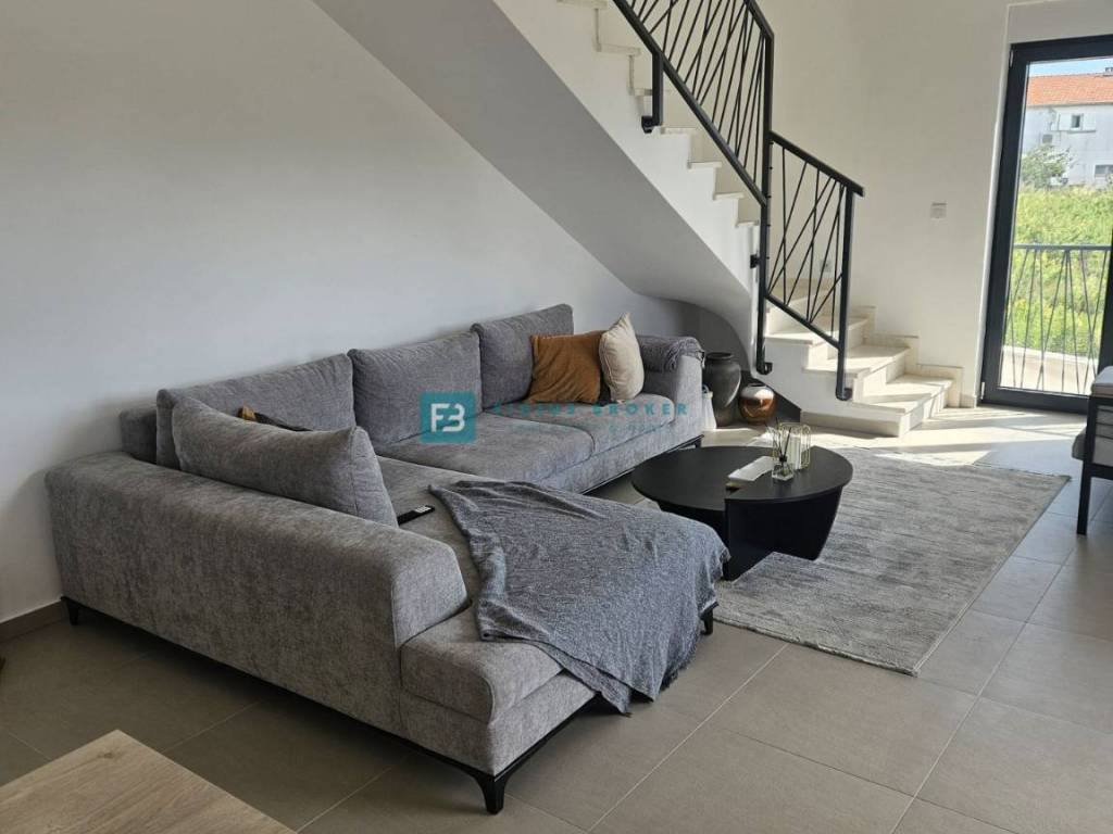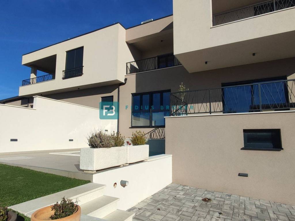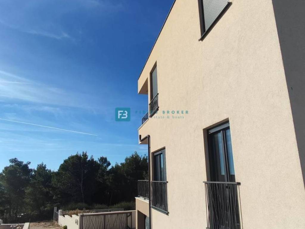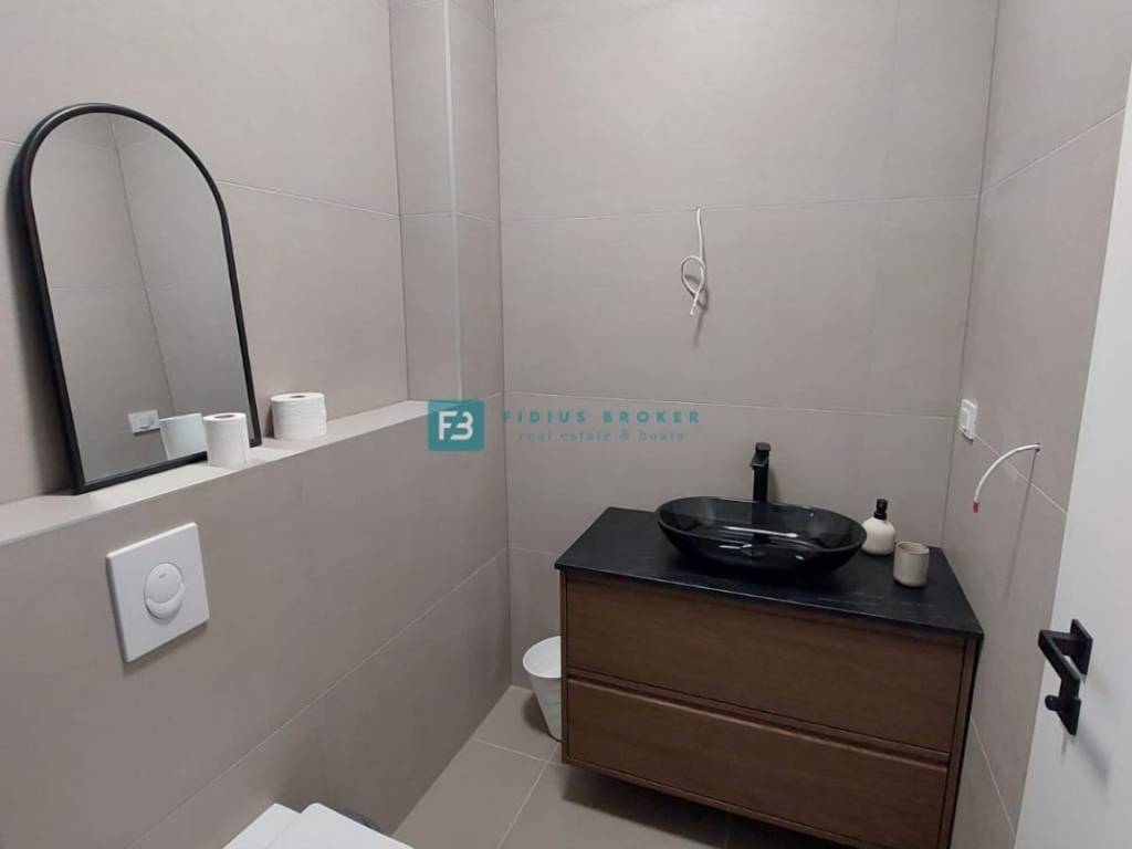 House S2 with a usable area of ​​192 m2 + garage 40 m2 + yard 25 m2 + garden 40 m2 + swimming pool 13 m2 + parking 12.50 m2 has three floors: basement + ground floor + 1st floor. In the basement there is a garage and a spacious storage room. The ground floor consists of a covered entrance area, toilet, bedroom, bathroom, kitchen, dining room and living room with access to a terrace connected to the swimming pool and a beautifully landscaped garden. An internal staircase leads to the first floor, where there are three comfortable bedrooms, two bathrooms and two terraces with a panoramic view of the sea. The house is well built and equipped. Among the equipment we highlight: polystyrene facade, security doors, high-quality PVC joinery, ALU electric shutters with mosquito nets, modern coupon sanitary ware, top quality ceramic floors, underfloor heating in all rooms via a heat pump, air conditioners in each room, glass railings on the terraces.