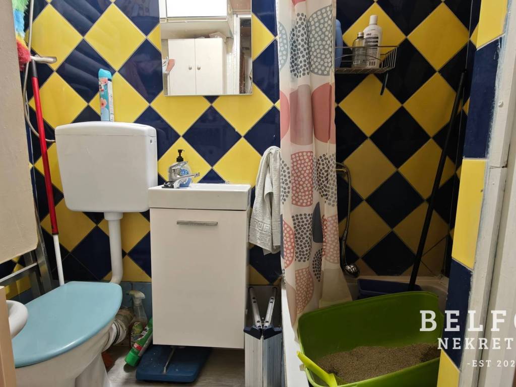 Nalazi se na drugome katu u zgradi s liftom izgrađenoj 1973. godine, a sastoji se ulaznog hodnika, dnevno-spavaćeg dijela, kuhinje s blagovaonicom i kupaonice s wc-om.