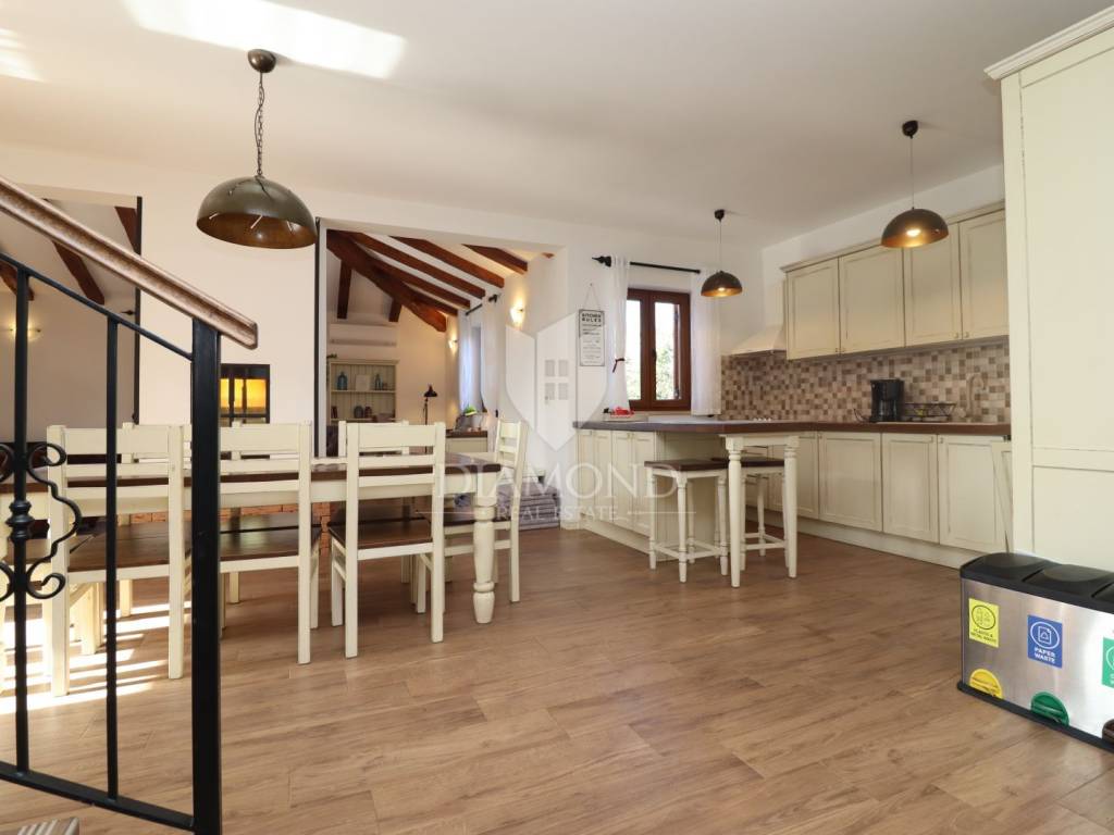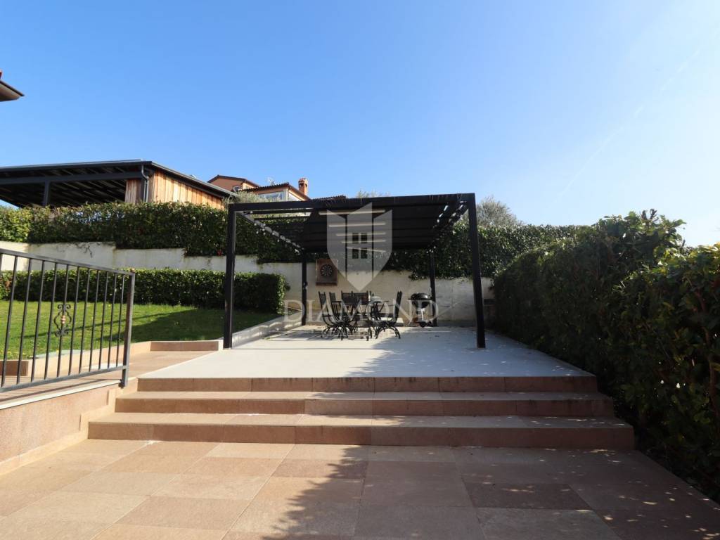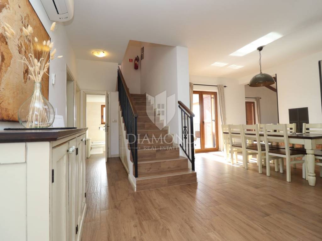 Located in a peaceful setting near Poreč, this spacious and tastefully furnished villa offers a total living area of 235 m² and is set on a landscaped plot of 744 m². The property features an open sea view, a private swimming pool and plenty of space for comfortable living or profitable tourist rental.