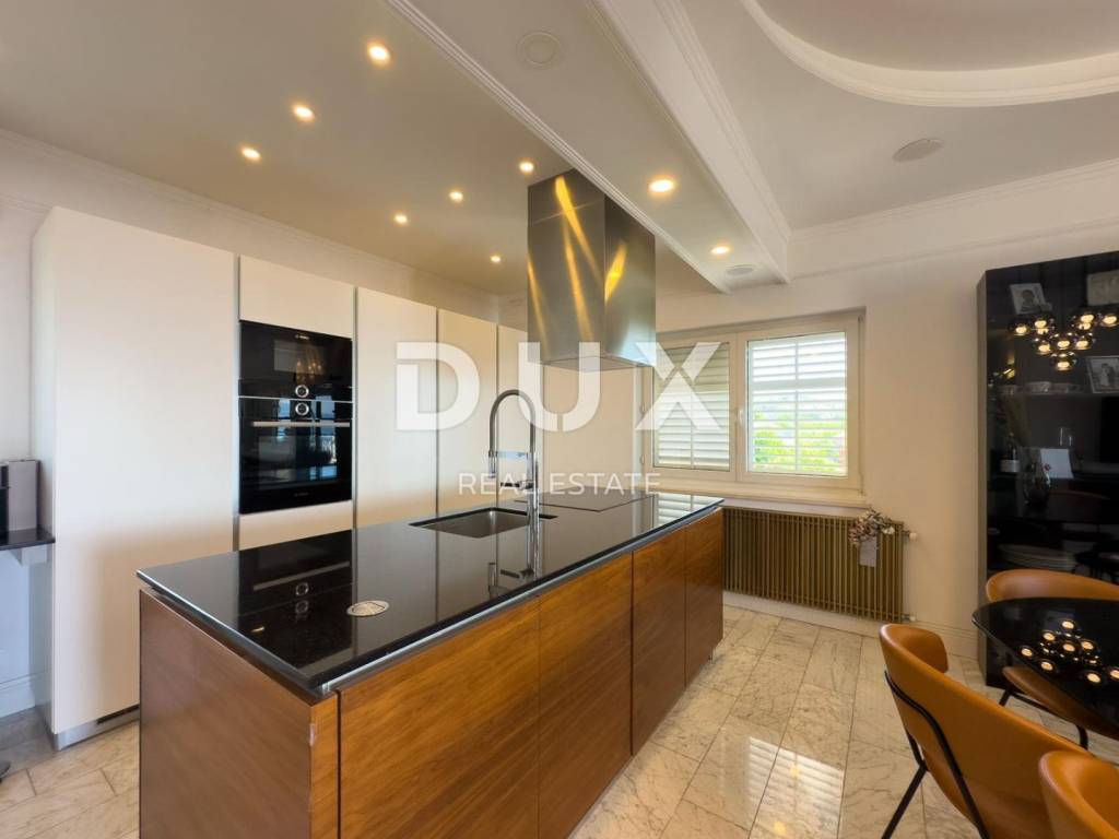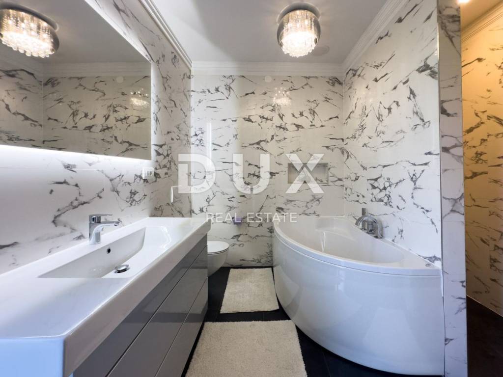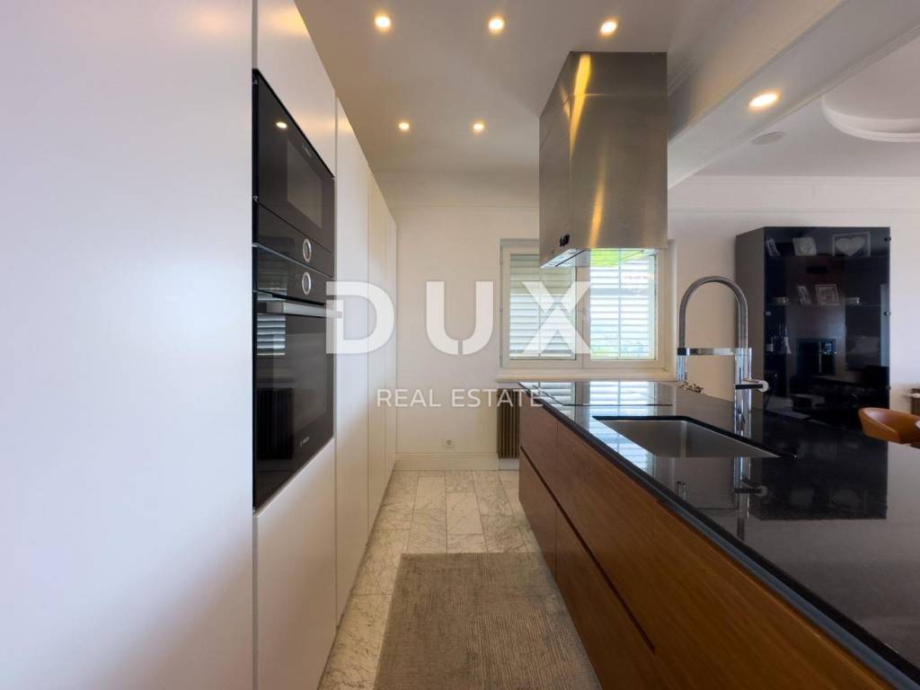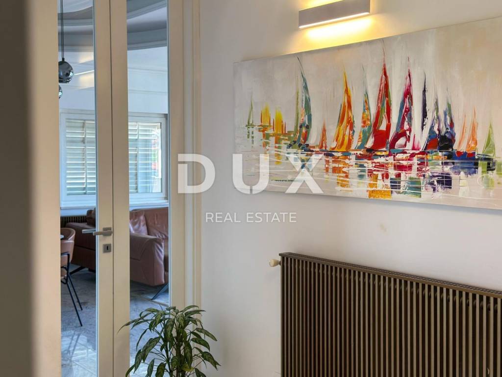 In the exclusive DUX offer, just a five-minute drive from the very center of Opatija, the famous Lungomare promenade and the crystal clear sea, there is this luxurious and designer apartment with a captivating panoramic view of the Kvarner Bay. Located in a quiet area surrounded by greenery, the apartment combines a modern lifestyle with superior comfort and functionality.
