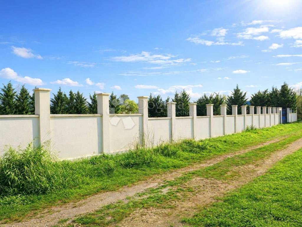 The entire plot is elegantly surrounded by a wall and a wrought iron fence, while cypress trees are planted in the surroundings, which further emphasize the Mediterranean atmosphere and natural beauty of the area.