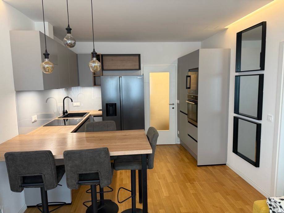 Stan je odmah useljiv i prodaje se s kompletnim namještajem i uređajima, uključujući kuhinju, kauč, krevet, perilicu rublja, sušilicu te sav ostali namještaj i opremu potrebnu za ugodan život.