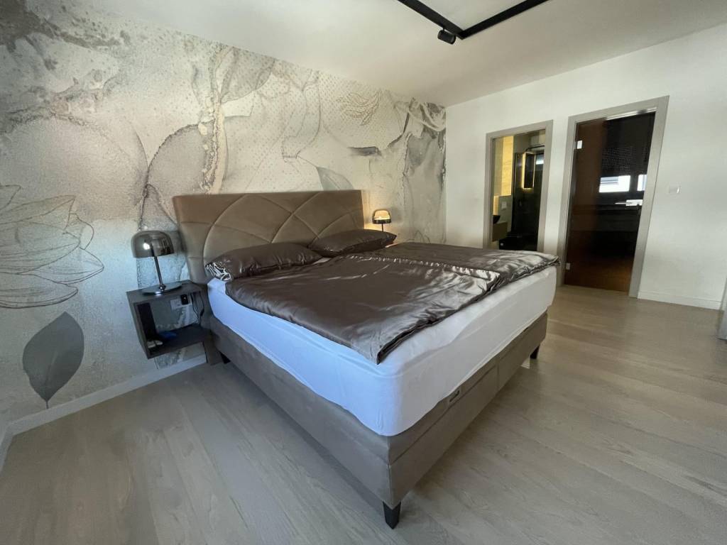 podno grijanje klima uređaj u svakoj prostoriji hrastov parket ugradbeni ormari s ogledalima duž cijelog hodnika kvalitetna Dan Kuchen kuhinja sa svim Bosch aparatima električni kamin u dnevnom boravku vinski hladnjak