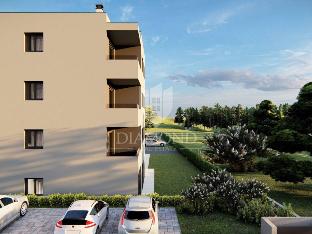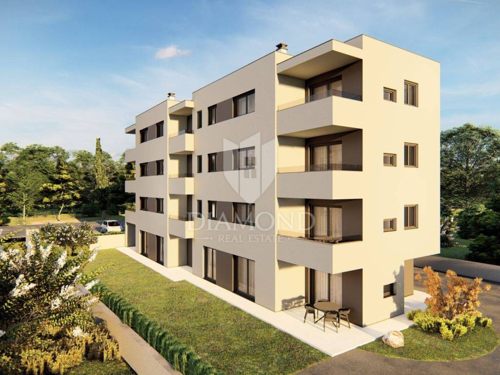 In a quiet village just 2km from the sea and a ten-minute drive from Poreč, this modern apartment in a new building is located, combining quality, functionality and an excellent location. The apartment is located on the third floor of a building with a total of 11 residential units, and its area is 66 m². It consists of a living room with kitchen and dining room, two bedrooms, bathroom, toilet and a terrace that provides a pleasant space for outdoor relaxation. Heating is provided via low-energy underfloor heating, while the first phase for the installation of air conditioning has been prepared, which gives the buyer the option of personalization according to their own wishes, and for convenience and comfort there is an elevator. The apartment has two parking spaces, and the planned completion of construction is May 2027. The price is shown with VAT included. The location offers an ideal balance between peace and practicality - in the immediate vicinity there are shops, restaurants, a post office, a children's playground and numerous walking and cycling paths leading to the sea.