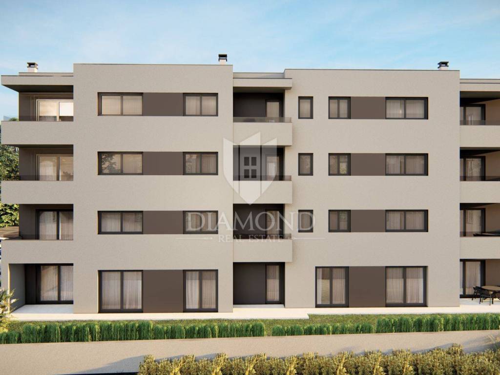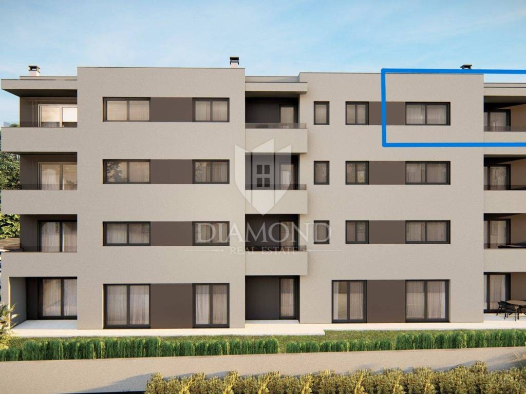 In a quiet village just 2km from the sea and a ten-minute drive from Poreč, this modern apartment in a new building is located, combining quality, functionality and an excellent location. The apartment is located on the third floor of a building with a total of 11 residential units, and its area is 66 m². It consists of a living room with kitchen and dining room, two bedrooms, bathroom, toilet and a terrace that provides a pleasant space for outdoor relaxation. Heating is provided via low-energy underfloor heating, while the first phase for the installation of air conditioning has been prepared, which gives the buyer the option of personalization according to their own wishes, and for convenience and comfort there is an elevator. The apartment has two parking spaces, and the planned completion of construction is May 2027. The price is shown with VAT included. The location offers an ideal balance between peace and practicality - in the immediate vicinity there are shops, restaurants, a post office, a children's playground and numerous walking and cycling paths leading to the sea.