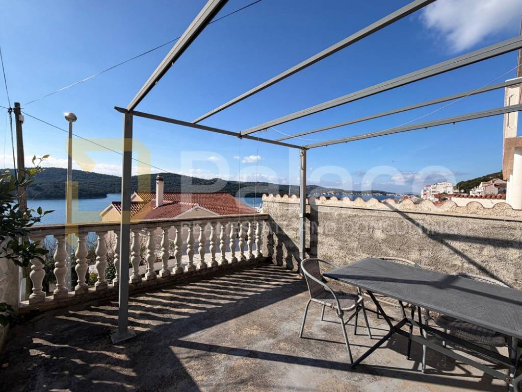 The property consists of four residential units spread over three floors, making it extremely interesting for both family living and investment in tourist rentals. On the ground floor, there is a 57 m2 apartment consisting of a bedroom, kitchen with dining area, spacious living room, and a bathroom. The apartment has a terrace of 20 m2, perfect for outdoor enjoyment. There is also a possibility of building an additional terrace above the garage, approximately 20 m2, which would further enhance the outdoor living space. External steps lead to the next floor where a spacious 70 m2 apartment is located. The apartment consists of a kitchen with dining area, hallway, bathroom, and three bedrooms. The apartment opens up to an impressive 36 m2 balcony with a beautiful sea view and surroundings. The apartment also has an additional side terrace of 15 m2. Behind the apartment, there is a spacious 21.5 m2 storage room that can be converted into additional living space as needed. On the last floor, there are two apartments, each 33 m2. Both apartments have a separate bedroom, bathroom, and a space combining kitchen, dining area, and living room. Each apartment has access to its own terrace of 17 m2. Additionally, on the same floor, there is a storage room of 9 m2, ideal for tourist accommodation needs. All units have air conditioning units as well as new PVC joinery.