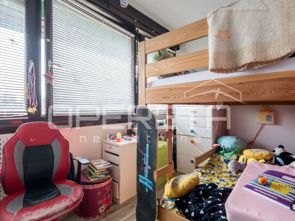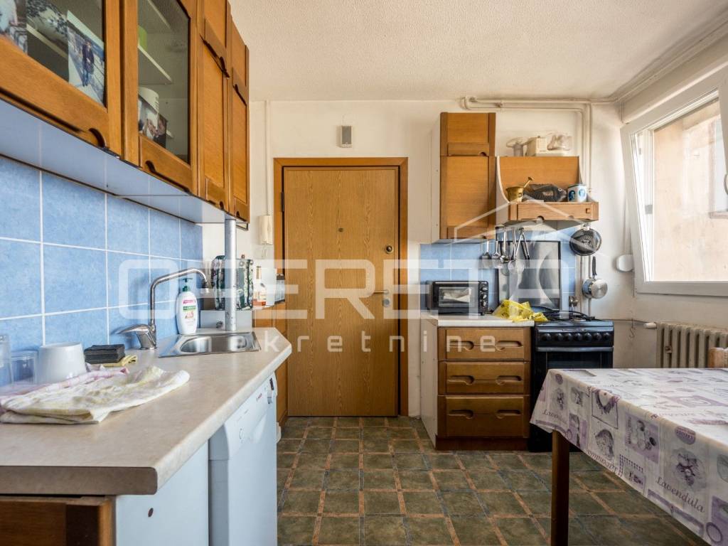 PRODAJA, STAN, Središće, Brune Bušića. Prodaje se stan na odličnoj lokaciji koji se sastoji od hodnika, kuhinje s blagavaonicom, dnevnog boravka sa izlazom na loggiu, 4 spavaće sobe, kupaonice s wcom, zasebnog wca i loggie. Trenutno je stan pregrađen i sastoji se od 2 stambene jedinice tako da postoji mogućnost da se jedna stambena jedinica iznajmljuje. Stanu je potrebna adaptacija. Vlasnici posjeduju i garažu (15m2) koju je moguće kupiti po cijeni od 30 000 eura. Pričuva 62 eura! Blizina svih sadržaja za život u mirnom obiteljskom kvartu.