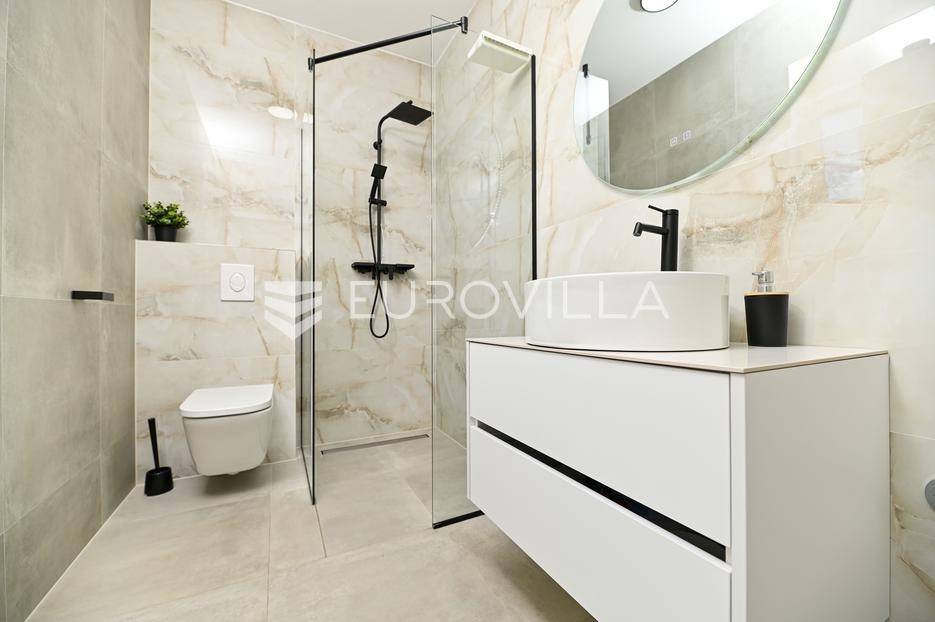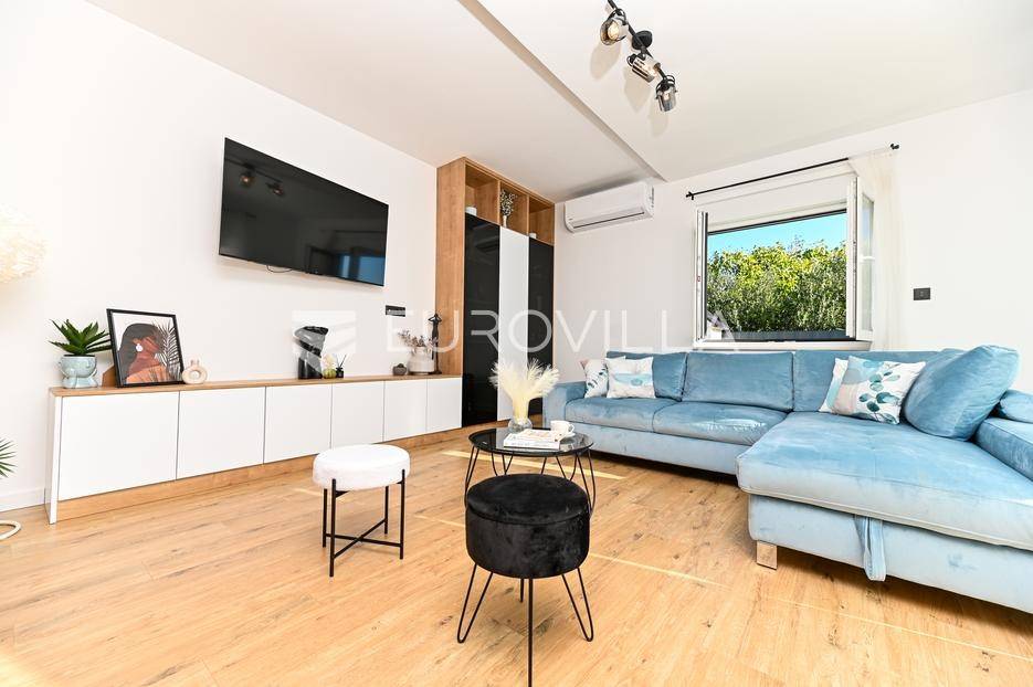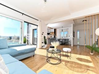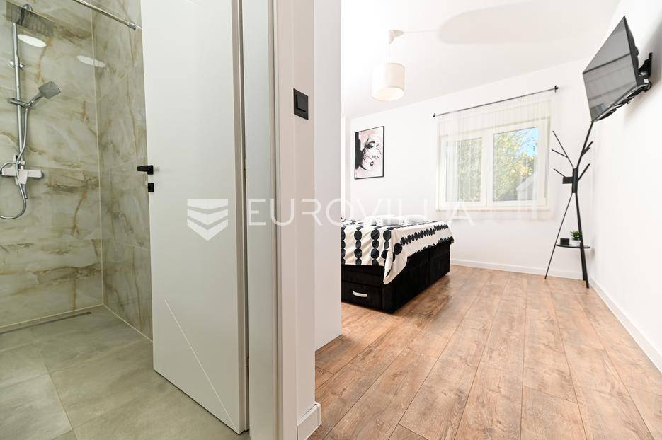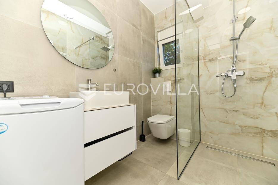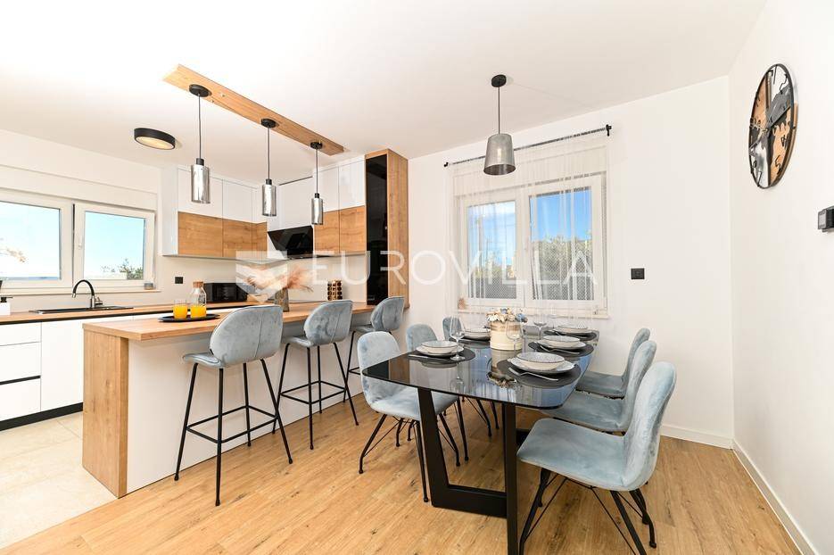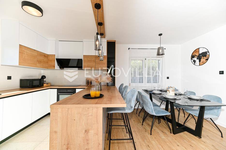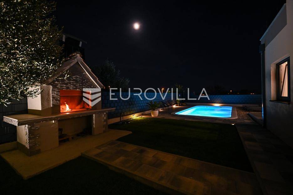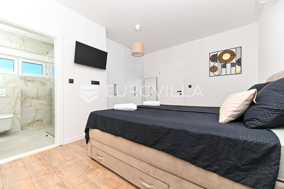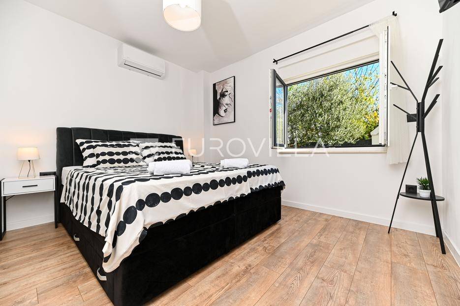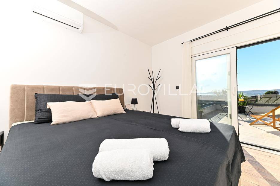 Kaštela, moderna kuća s vanjskim bazenom izgrađena 2025. godine, položena na parceli površine 490 m2. Razvedena je u dvije etaže, ukupne površine 160 m2.Prizemlje je podijeljeno na potpuno opremljenu kuhinju s blagovaonicom, dnevni boravak, praonicu, WC i jednu spavaću sobu s kupaonicom, dok se na katu nalaze dvije spavaće sobe s pripadajućim kupaonicama i izlazom na veliku terasu s pogledm na more.Potpuno ograđena i uređena okućnica krije bazen, sunčalište, prostor za druženje i roštilj.Lokacija dobra za život, pristupačna, a svi potrebni sadržaji u blizini.Za sve dodatne informacije, stojimo vam na raspolaganju.... Više na eurovilla.hr, ID: 946524