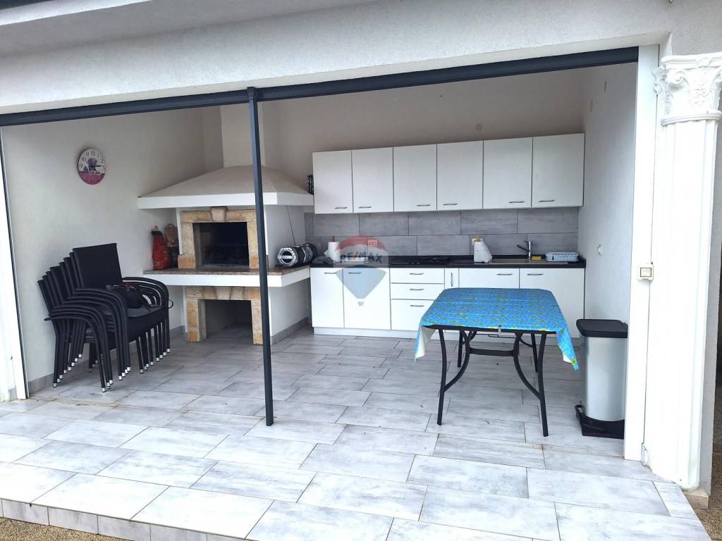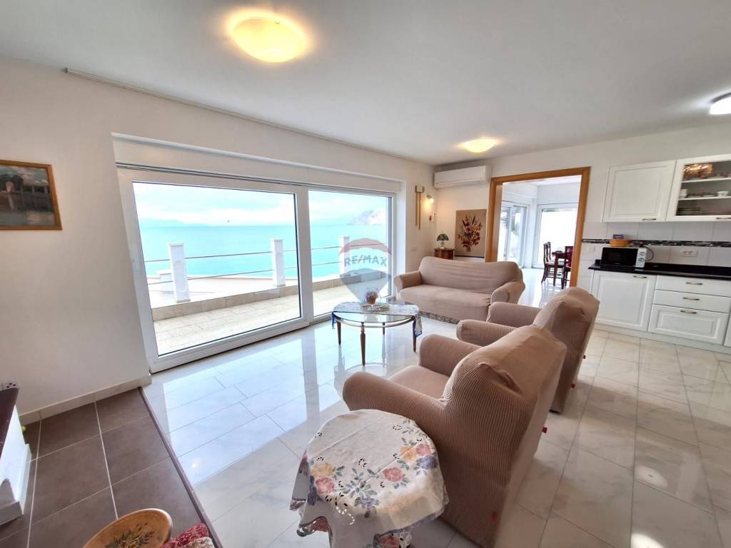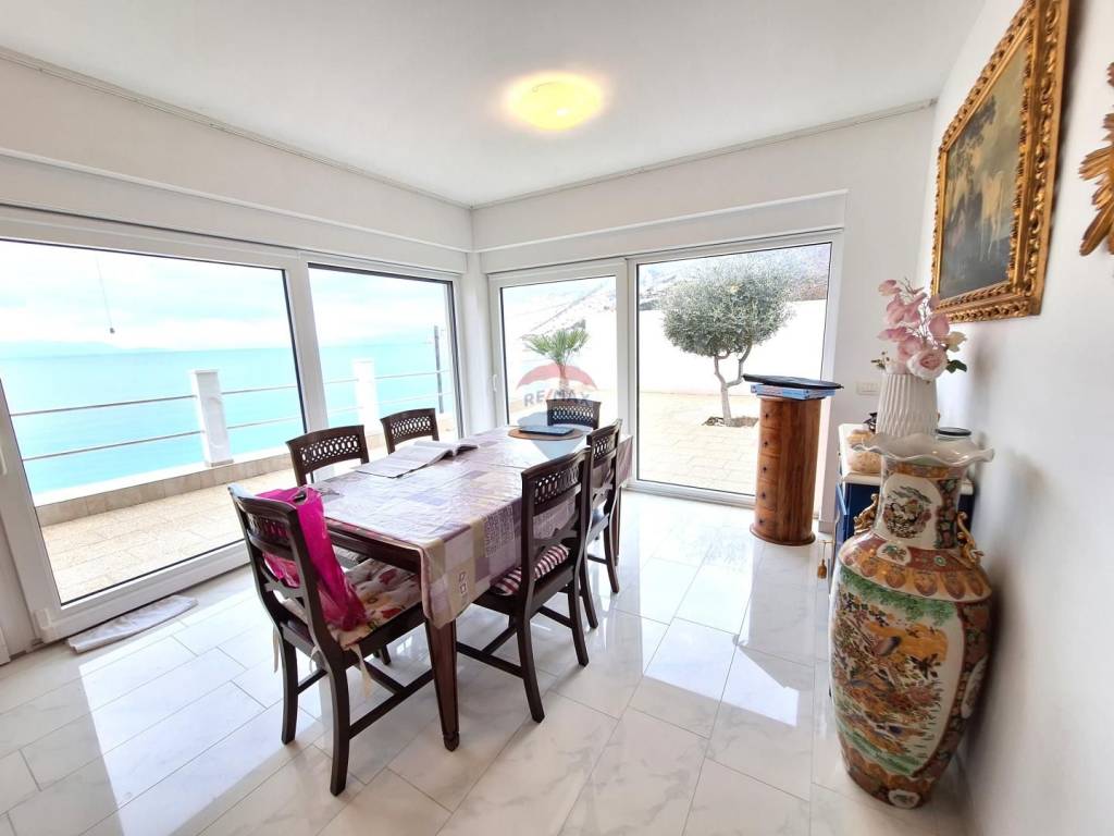 Senj, surroundings - Remax Centar Nekretnina offers a unique property in a quiet, charming village located first row to the sea and a pebble beach with a completely open view of the beach, sea and islands. The house has a total area of 164 m2 and consists of a ground floor and an upper floor. The ground floor has a living area, kitchen and dining room with access to the terrace, a bedroom with a private bathroom, a wardrobe, a hallway, a toilet and a storage room. The living room is decorated with a traditional tiled stove that provides additional warmth and a pleasant atmosphere. On the upper floor there are three bedrooms with balconies and a bathroom. Next to the house there is a terrace with a sundeck as well as a closed summer kitchen with a fireplace, and the property also has a neat storage room of 25 m2. It is being sold fully furnished. This rare property is the perfect choice for anyone who wants to enjoy the immediate proximity of the sea and all its benefits.