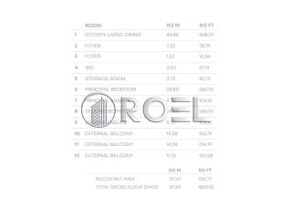 This thoughtfully designed residence features a spacious open-concept living room connected with the kitchen and dining area, two comfortable bedrooms, two bathrooms, a guest toilet, an entrance area, a storage, and three balconies 14.38 m2, 14.38 m2, 11.76 m2 the perfect place to enjoy the Mediterranean atmosphere and mild coastal climate.