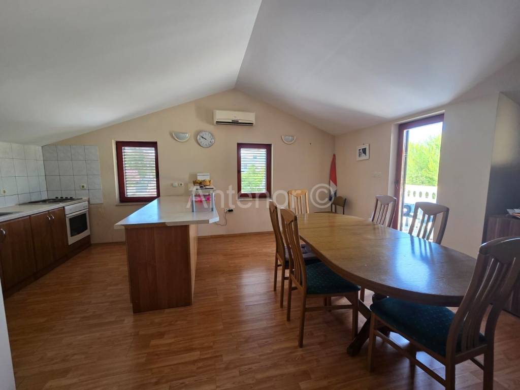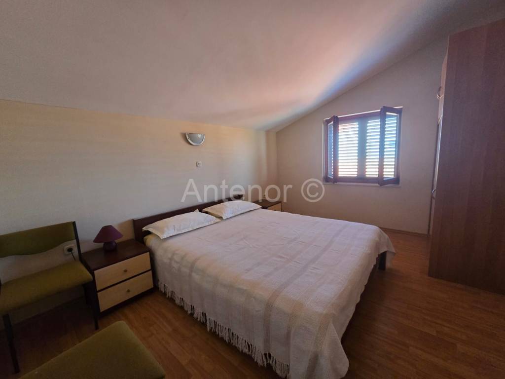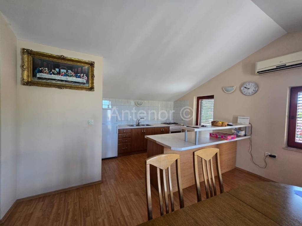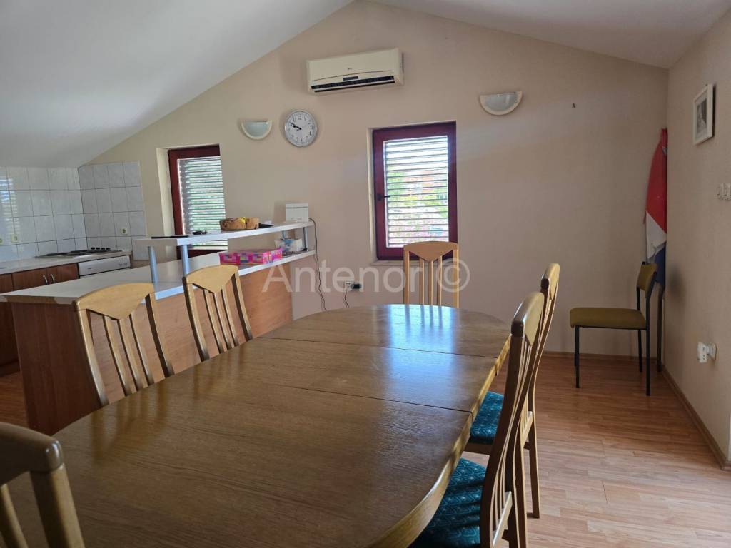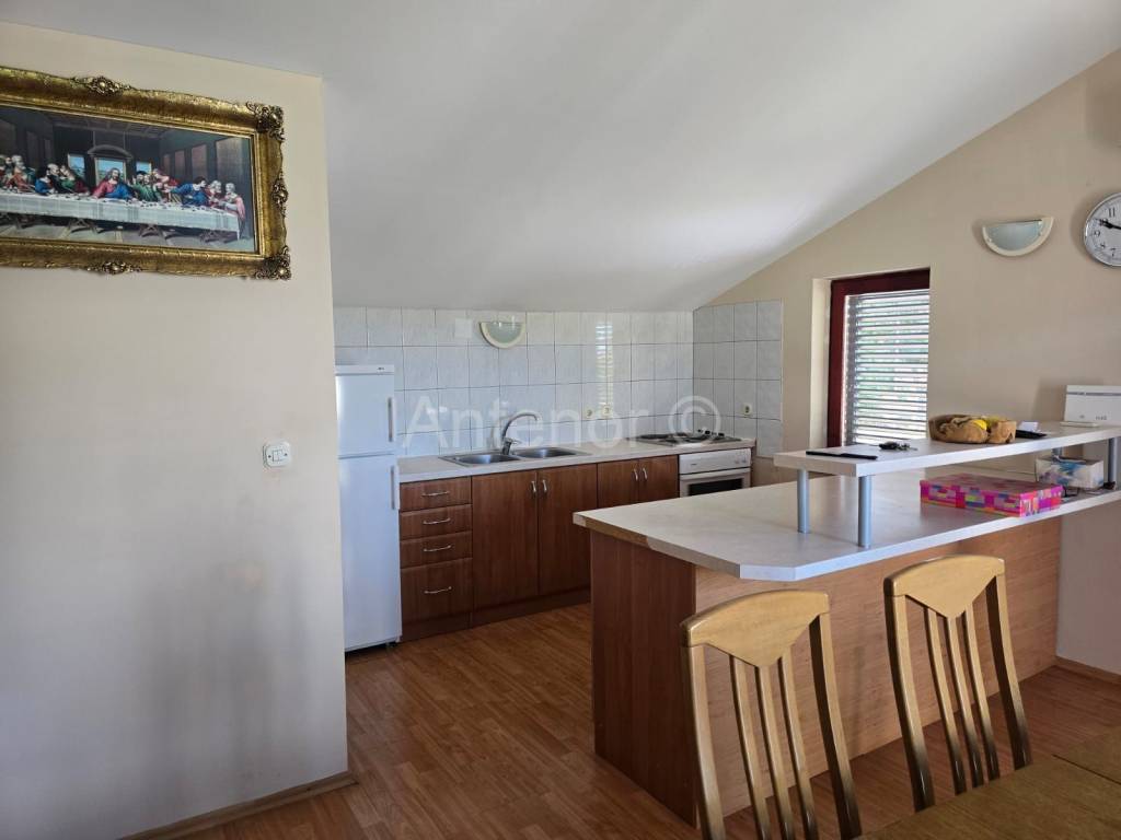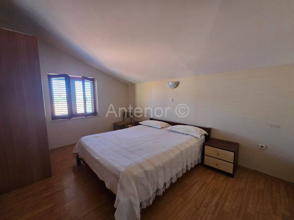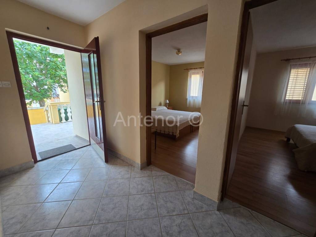 VRSI/MULO - prodaje se samostojeća kuća sa dvije stambene jedinice sagrađena na zemljištu od 515 m2. U prizemlju kuće nalazi se stan koji se sastoji od hodnika, kupaonice, spremišta, dvije spavaće sobe, kuhinje sa blagavaonicom i dnevnog boravka ukupne tlocrtne površine 80,92 m2. Stanu u prizemlju pripada i loggia površine 1,16 m2 te nenatkrivena terasa od 18,67 m2. Na kat se dolazi vanjskim stubištem gdje se nalazi još jedan dvosoban stan identičan kao i stan u preizmju. Dvorište kuće je uređeno, a kući pripada pomoćni objekt odnosno garaža površine 33,11 m2.