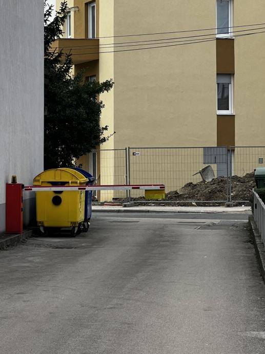 Zgrada se nalazi u ograđenom dvorištu s rampom, a stanu pripada parkirno mjesto br. 2, smješteno neposredno uz ulaz u zgradu.