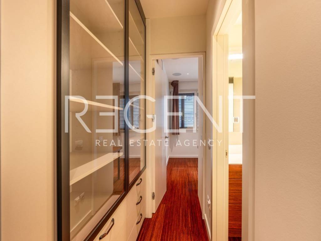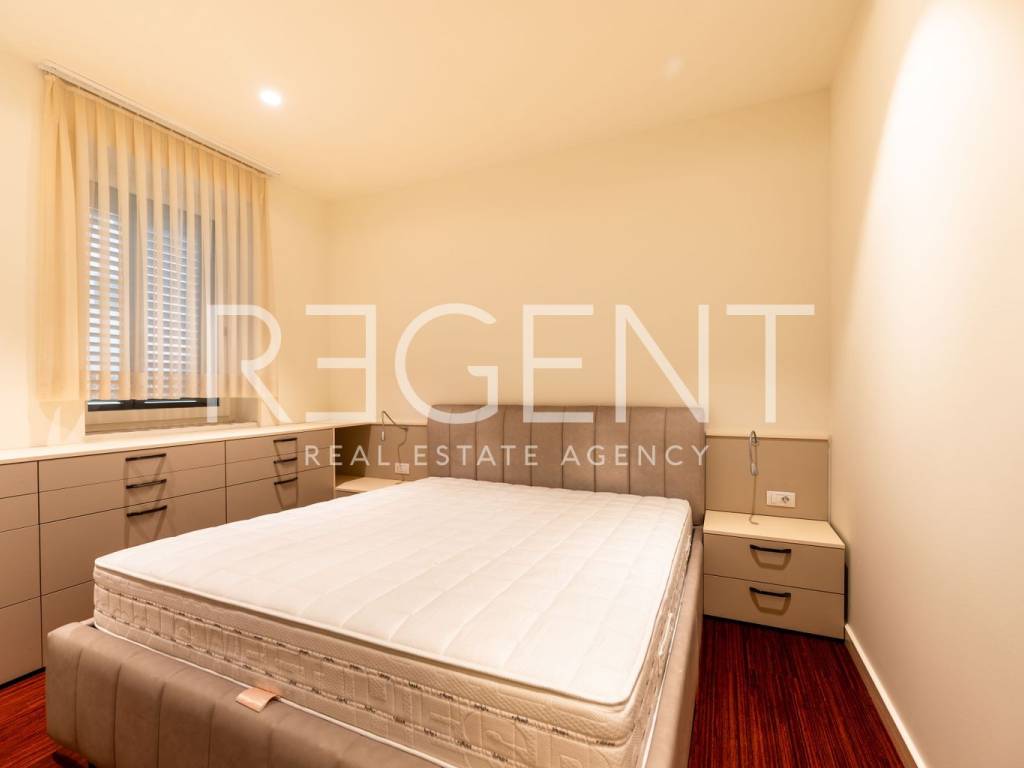 Zagreb, VMDMaksimir – Spacious three-room apartment with a terrace, loggia, and two garages (110 m²) A modern three-room apartment with an area of 110 m² is for rent, featuring a large, spacious terrace and an additional loggia, located on the 2nd floor of a building in a quiet part of Maksimir. Two garage parking spaces and a storage room are included in the rental price. The apartment consists of two bedrooms, a kitchen connected to the living room, a hallway, and two bathrooms. The living area opens onto a spacious terrace ideal for outdoor living, while one of the rooms has access to the loggia. The apartment is equipped with a quality kitchen, PVC joinery, central heating, and air conditioning. It can be rented furnished or unfurnished, depending on the needs of the tenant. A storage room and two garage parking spaces are also included, which further increases the practicality of everyday life. Utilities are estimated at around 250 EUR per month. The apartment is located in a residential part of Maksimir, in the immediate vicinity of a school, kindergarten, shops, and a tram stop. A quiet location with lots of greenery and excellent traffic connections. Pets are welcome with prior arrangement.