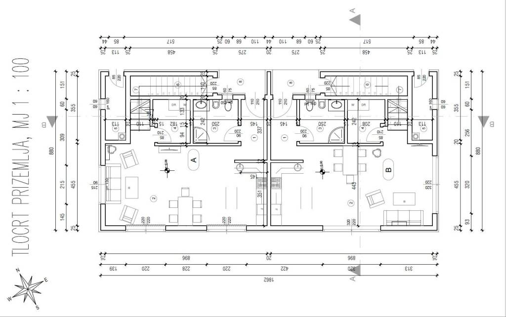 A modern semi-detached house under construction is for sale, located in a beautiful and quiet location on the outskirts of the city of Poreč, only 2000 meters from the sea. The planned completion of construction is by the end of 2026.