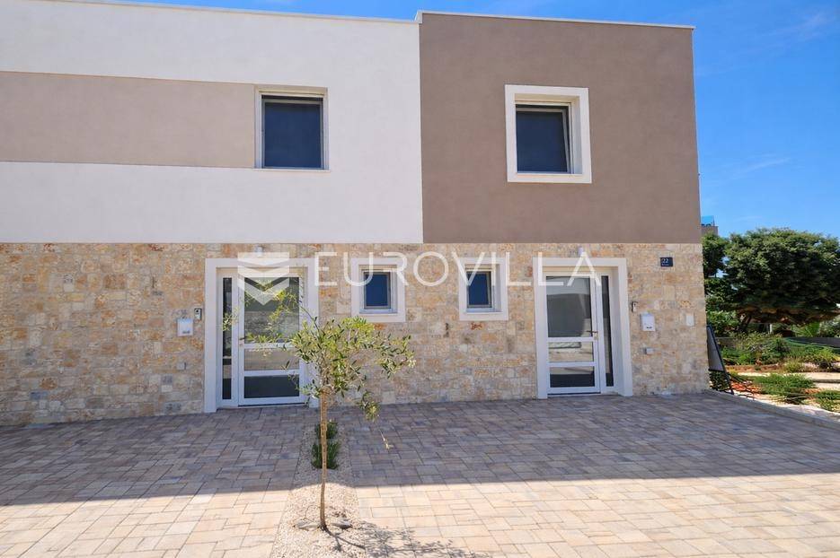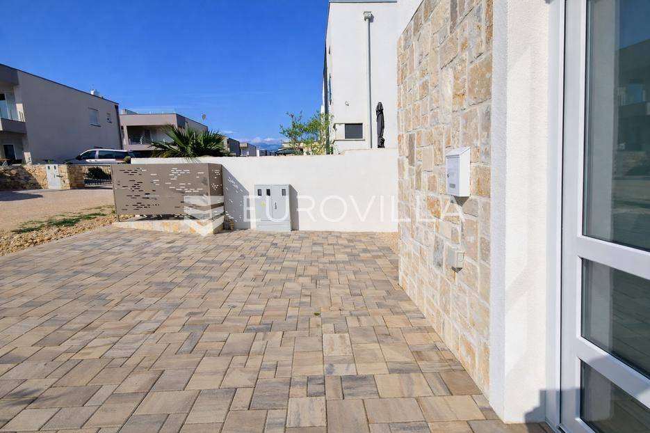 MANDRE, OTOK PAG - Dvoetažan stan u modernoj novogradnji, vrt, terasa, balkon, 2 parkirna mjesta, 200 m od moraPredstavljamo Vam moderan dvoetažan stan u novogradnji s ukupno tri stambene jedinice, smješten u jednoj od najljepših ulica u Mandrama, svega 200 metara od mora i plaže.Zgrada je završena u lipnju 2025. godine, stan je potpuno useljiv, a dokumentacija uredna. Riječ je o jedinom slobodnom stanu u zgradi, oznake S1, koji se prostire kroz prizemlje i 1. kat te ima zaseban ulaz, što budućem vlasniku pruža dodatnu privatnost i osjećaj kuće.Ukupna neto površina stana iznosi 65,72 m2. Sastoji se od dvije spavaće sobe, open space dnevnog boravka s kuhinjom i blagovaonicom, kupaonice, dodatnog WC-a, natkrivene terase u dvorištu, vrta i balkona.Stan je orijentiran na sjeverozapad i jugoistok, što mu osigurava dobru osvijetljenost i ugodan boravak tijekom cijelog dana. Uz stan dolaze i dva parkirna mjesta.Zgrada je građena u modernom mediteranskom stilu, a od opreme se izdvajaju vanjska stolarija s troslojnim staklima, video portafon, podno grijanje te klima uređaji u svim spavaćim sobama i dnevnom boravku.Ova nekretnina predstavlja odličan izbor za odmor, cjelogodišnje stanovanje ili turistički najam, upravo zbog mirne lokacije, kvalitetne izvedbe i blizine mora.Za više informacija i dogovor oko razgledavanja, slobodno se javite.... Više na eurovilla.hr, ID: 184138