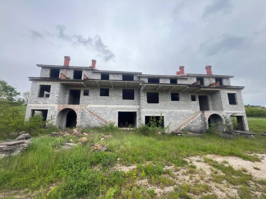 Prodajemo građevinsko zemljište površine 5.746 m2, a koje se nalazi u okolici Pazina. Na zemljištu se nalazi postojeći objekt tlocrtne površine 260 m2 ( dimenzija 12,7 m x 20,4 m ), tj. brutto površine 520 m2, raspoređenih na 3 etaže, koji je u roh bau fazi izgradnje (objekt je stavljen pod krov), te ga je potrebno završiti.