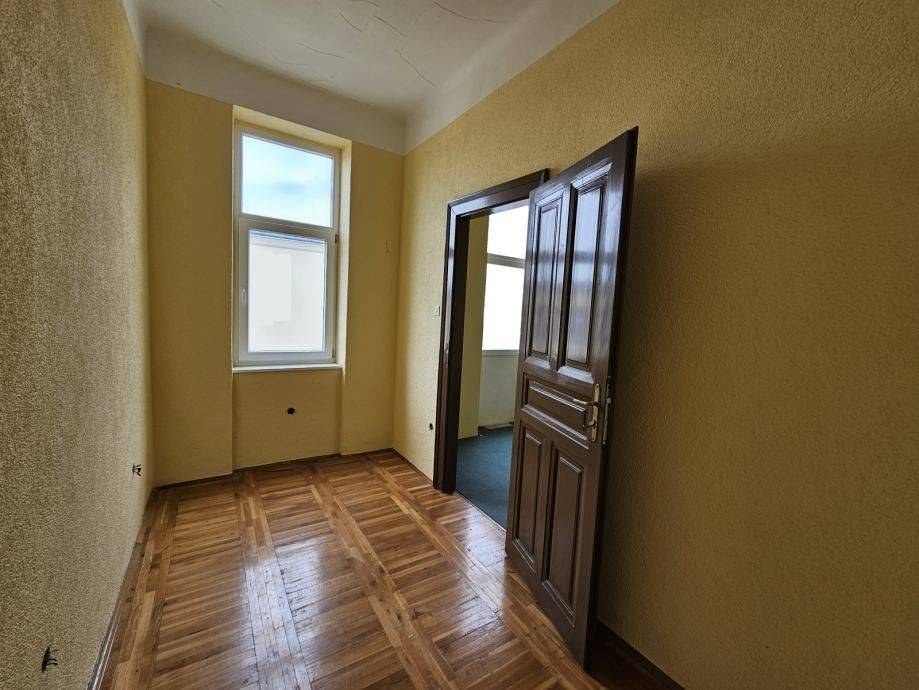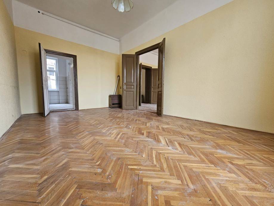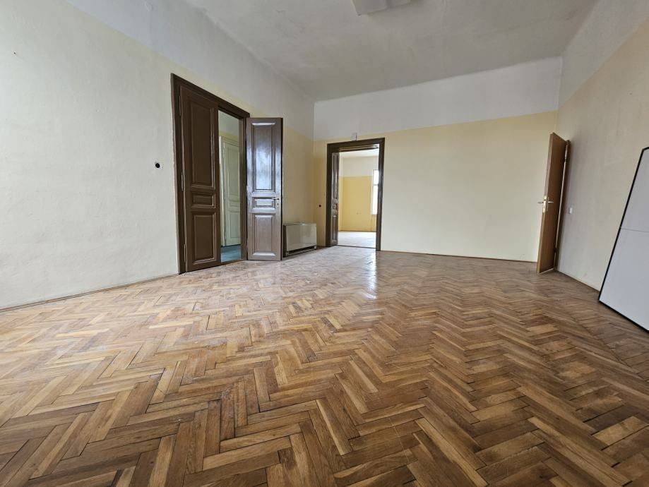 Prostrani šesterosobna stan u stambenoj zgradi izgrađenoj u secesijskom arhitektonskom stilu početkom prošlog stoljeća u užem centru grada Osijeka. Stan se nalazi na drugom katu stambene katnice. Stan je potrebno adaptirati, plinska instalacija prisutna u stanu. Prostire se na stambenoj površini od 137m2, a sastoji se tri veće sobe, tri manje sobe, kuhinje, kupaonioce i hodnika. Stanu pripada podrum od 18m2 te tavanski prostor od 42,5m2. U stanu se nalaze; telefon, internet, ispred stana nalazi se više parkirnih mjesta koja se mogu zakupiti po stanarskoj cijeni. Stan se nalazi u neposrednoj blizini osječkih perivoja i promenade.