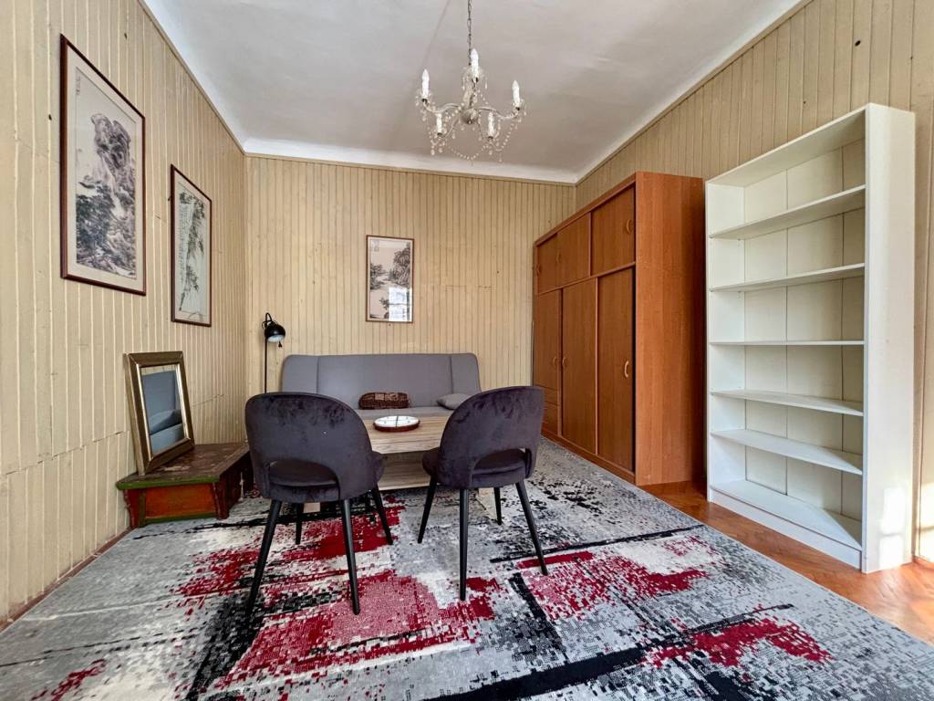 This apartment offers a functional space ideal for those seeking the convenience of living in the heart of the neighborhood, with everything within easy reach. The location allows quick access to all important facilities and traffic routes, while at the same time providing peace and quiet on the courtyard side. The sofa unfolds into a double bed.