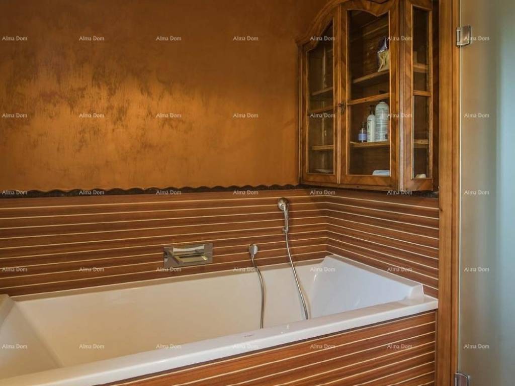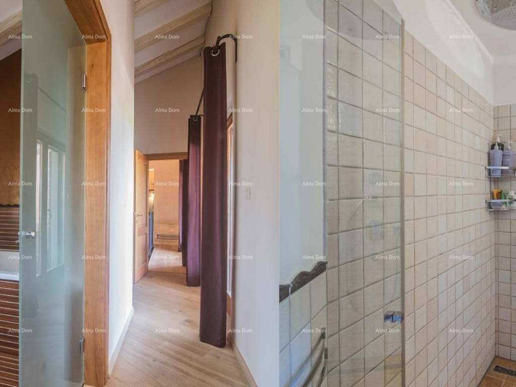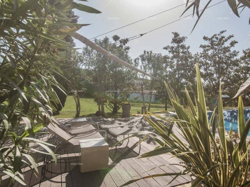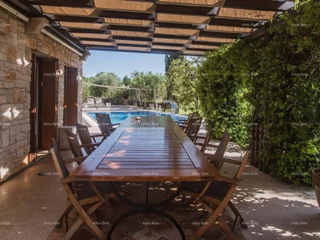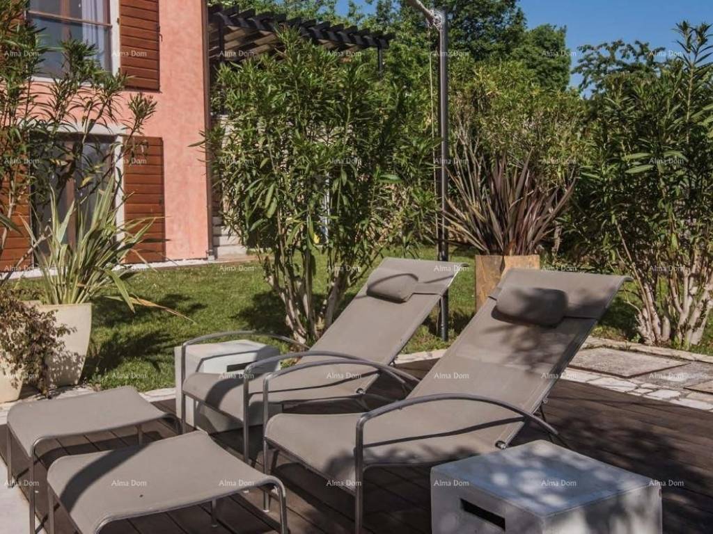 The spacious 525 m courtyard, blending perfectly with the lush surroundings, features a heated swimming pool, enjoyable all year round.