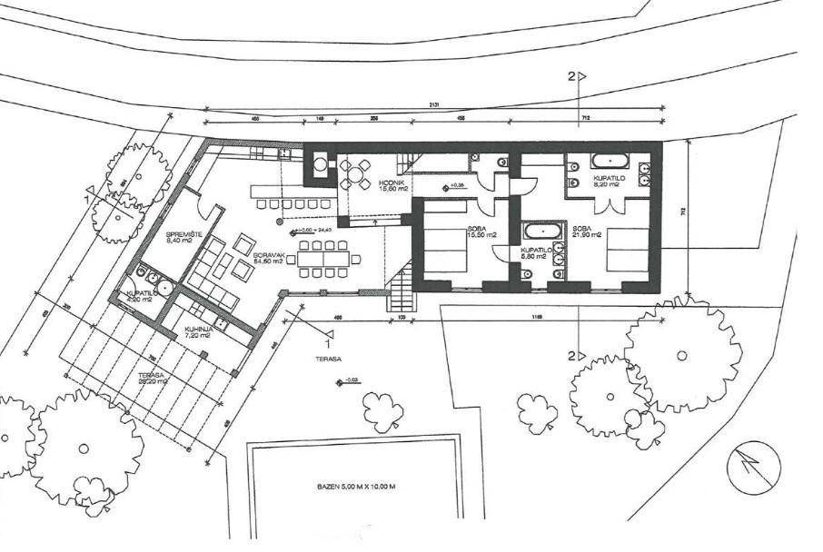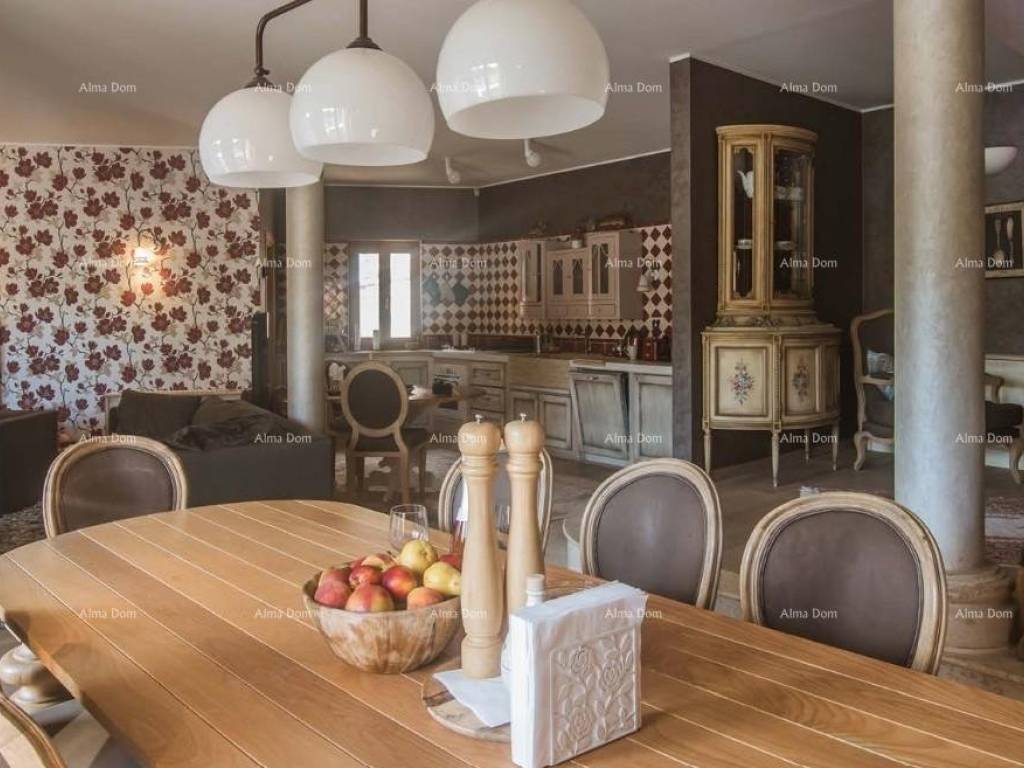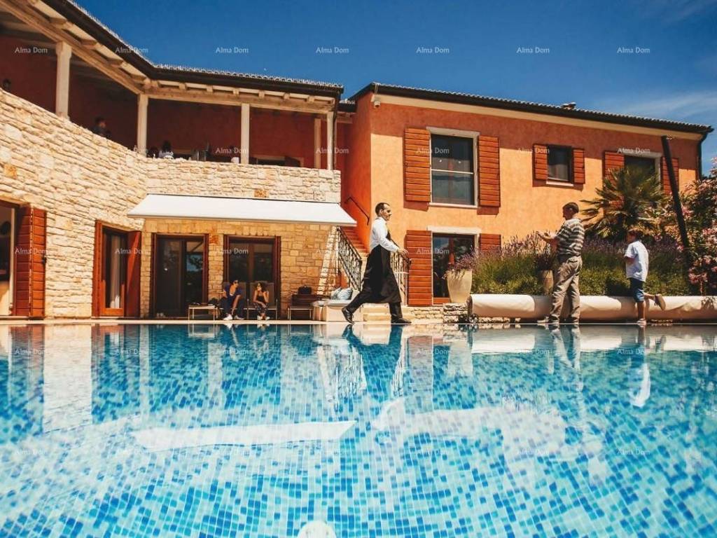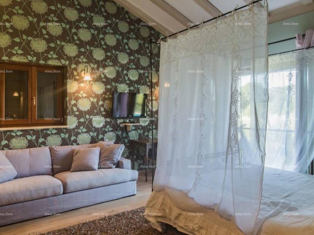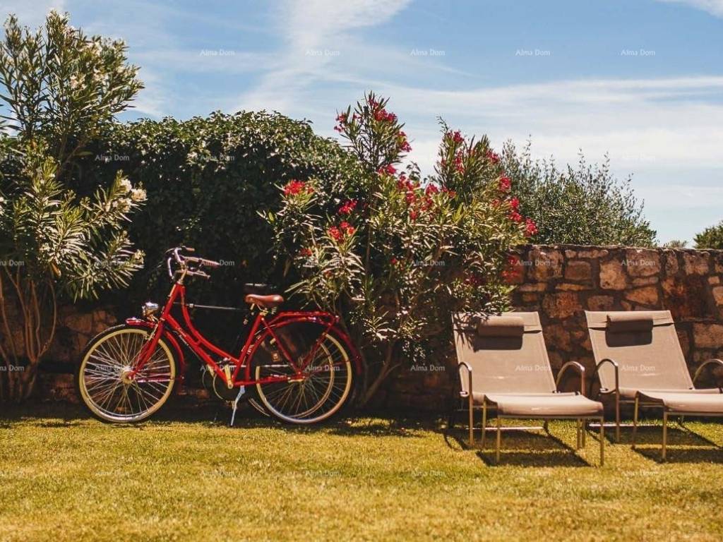 The spacious 525 m courtyard, blending perfectly with the lush surroundings, features a heated swimming pool, enjoyable all year round.