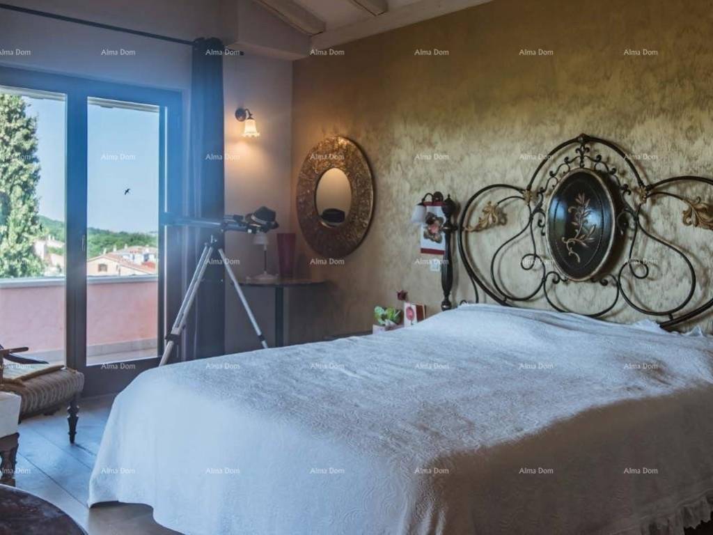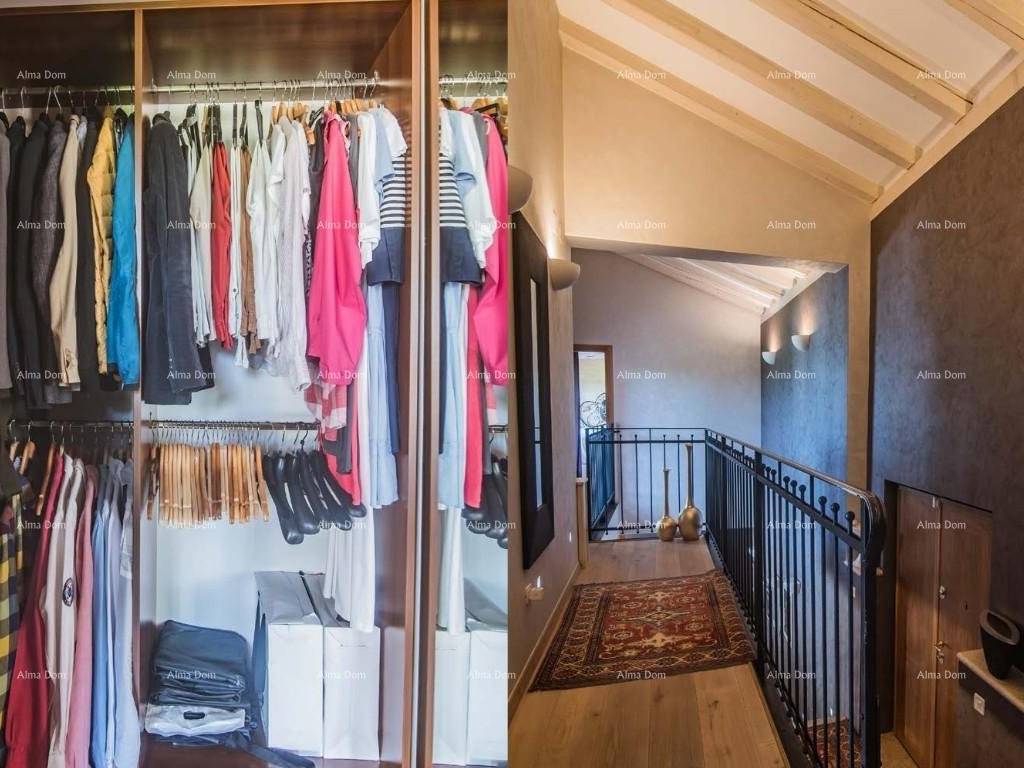 The first floor features an indoor gallery, 2 bedrooms, each with an en-suite bathroom, a French balcony, and a view of the pool and olive grove. At the end of the gallery, there is a master bedroom with a bathroom, a spacious walk-in closet, and an upper terrace of approximately 50 m.