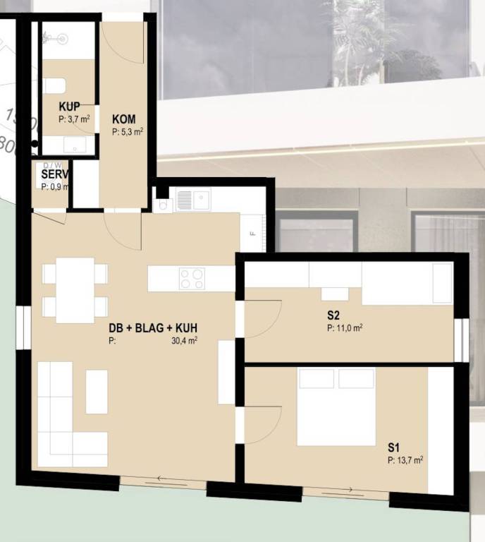 Savica, moderan trosoban stan zatvorene površine 65 m2 u luksuznoj novogradnji iz 2025., smješten u prizemlju zgrade s privatnim vrtom.Sastoji se od predsoblja, otvorenog koncepta dnevnog boravka i kuhinje s blagovaonicom, dvije spavaće sobe, kupaonice, te servisne prostorije. Privatni vrt od 69 m2 se nadovezuje na dnevni prostor, pružajući jedinstvenu oazu mira. Pomno projektiran s trostrukom orijentacijom (istok, jug, zapad) za obilje prirodnog svjetla.Stanu pripada garažno parkirno mjesto od 12,50 m2.Opremljen najmodernijim tehnologijama: visoka energetska učinkovitost, smart home sustav, Schuco aluminijska troslojna stolarija sa električnim roletama, podno grijanje i klimatizacija u svakoj sobi, ventilirana fasada, grijana silazna rampa.Lokacija nudi povezanost sa svim dijelovima grada, uz blizinu javnog prijevoza, obrazovnih institucija, trgovačkih centara i parkova.Za sve dodatne informacije stojimo Vam na raspolaganju.... Više na eurovilla.hr, ID: 268958