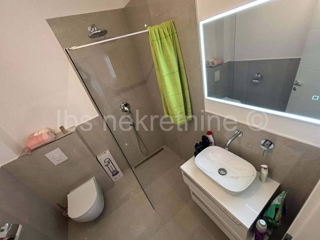 We are selling a comfortable two-bedroom penthouse apartment with a total living area of 66 m and a spacious roof terrace of 67 m, located on the second floor of a less modern residential building (also the last floor) on the south side of the island of Čiovo, in the immediate vicinity of the historic town of Trogir.