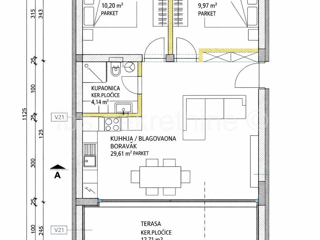 Above the apartment there is a spacious roof terrace of 67 m, equipped with a bioclimatic awning and side glass walls, which provides the perfect space for relaxation and socializing. The terrace has already been installed with electricity and water, which allows for easy installation of a barbecue, summer kitchen or jacuzzi, creating a real Mediterranean lounge area with a panoramic sea view.