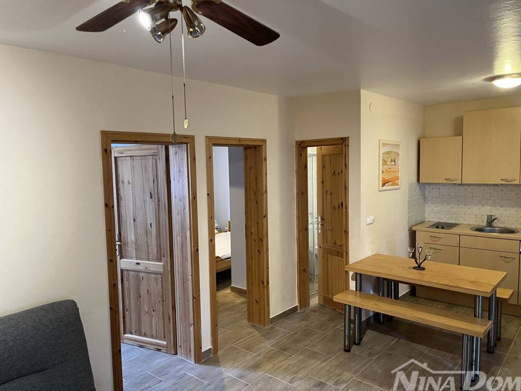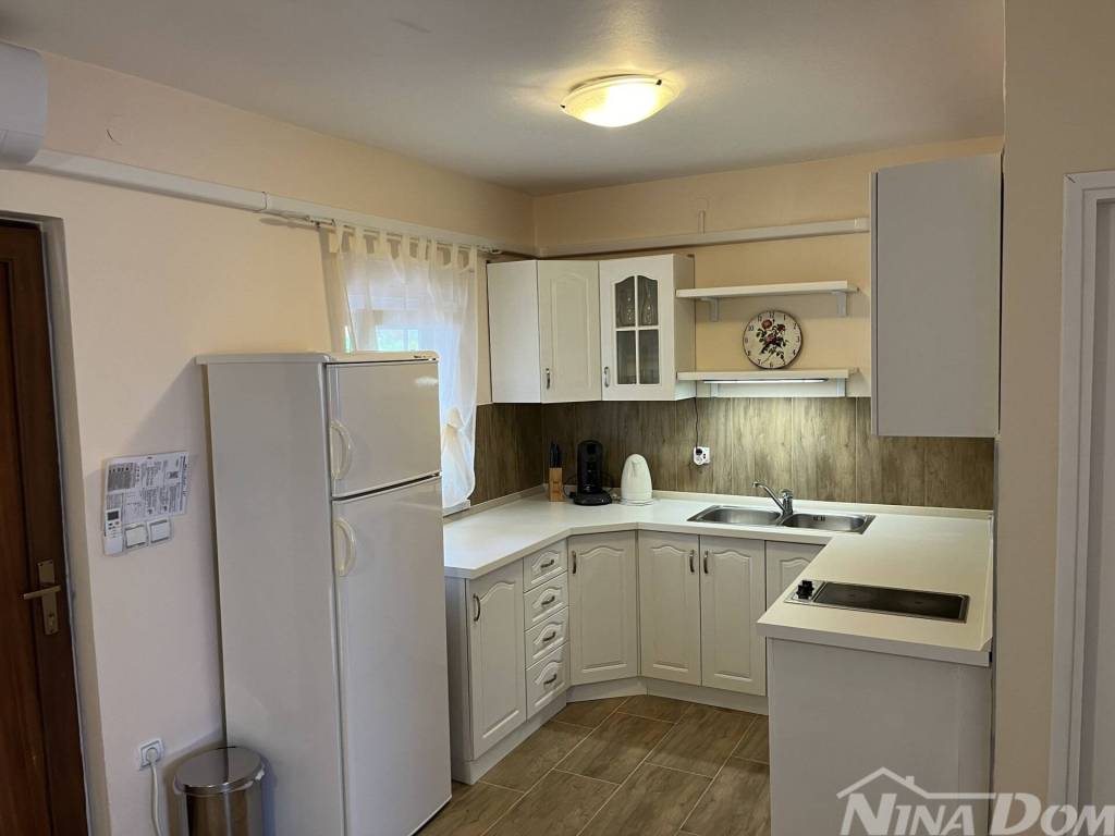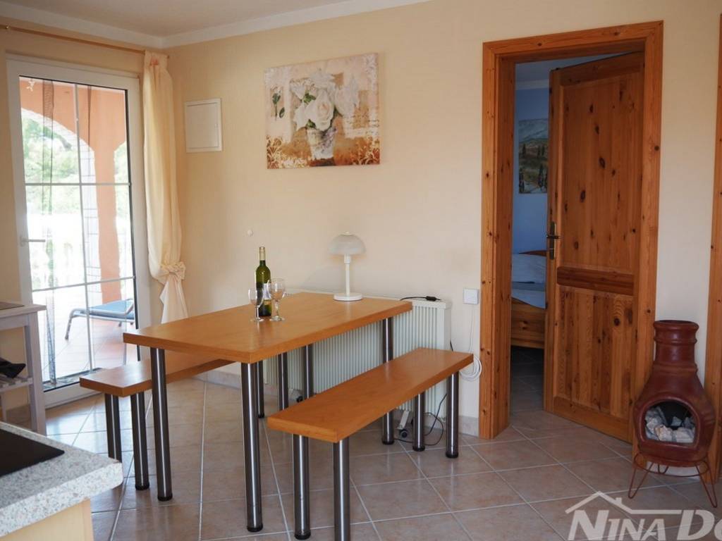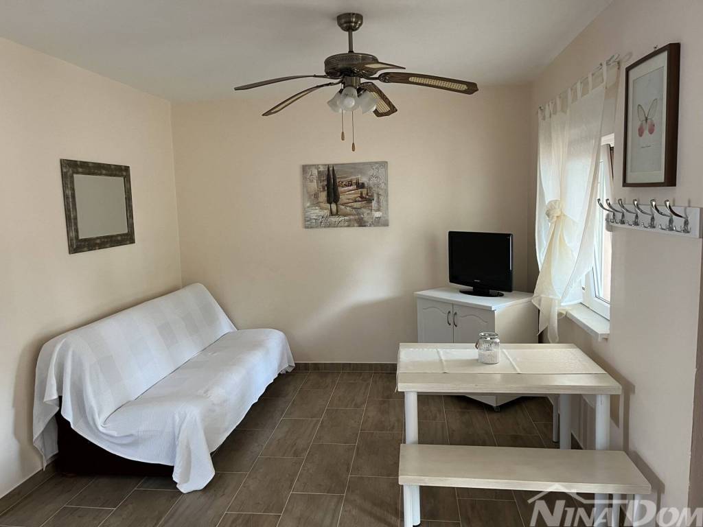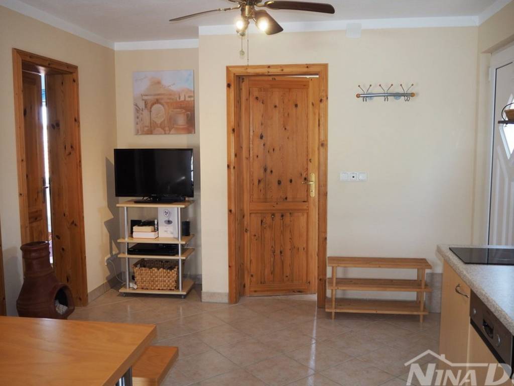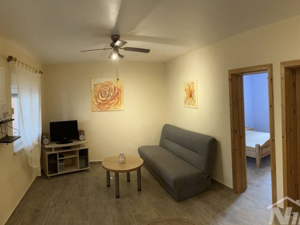 Južna strana otoka Vira, nekretnina koja se sastoji od prizemlja i kata s tri stambene jedinice, vanjskih tlocrtnih dimenzija 15,04 x 12.59 met. Prizemlje: dva identična apartmana od kojih svaki ima dvije spavaće sobe, kuhinja s dnevnim boravkom, kupaona, natkrivena terasa. Kat: vanjske stepenice, kuhinja s blagovaonicom, dvije spavaće sobe, kupaona, terasa koja je djelom natkrivena a dijelom otvorena, manja ostava na terasi. Kompletno je opremljena i kao takva se prodaje (osim osobnih stvari prodavatelja). Klimatizirana. Okućnica uređena s parkirnim mjestima. Voda: dvije cisterne za vodu od kojih svaka ima 12 m3. Priključak na elektro mrežu. septička jama. Od lijepo uređene plaže udaljena je svega 160 metara.