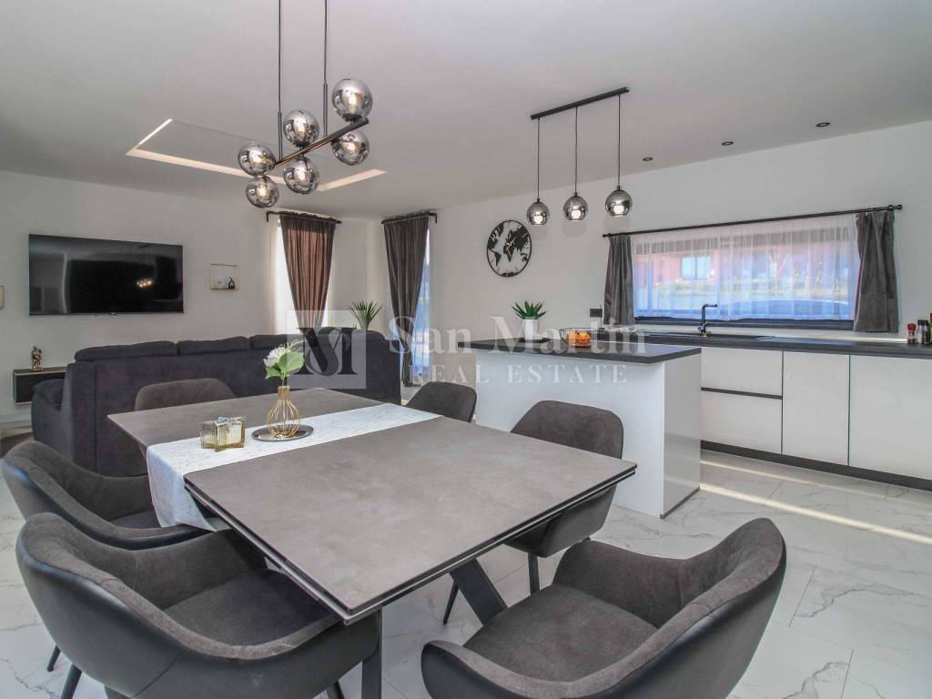A modern house is offered in a quiet location near Žminj, ideal for those looking for a combination of comfort, privacy and investment potential.