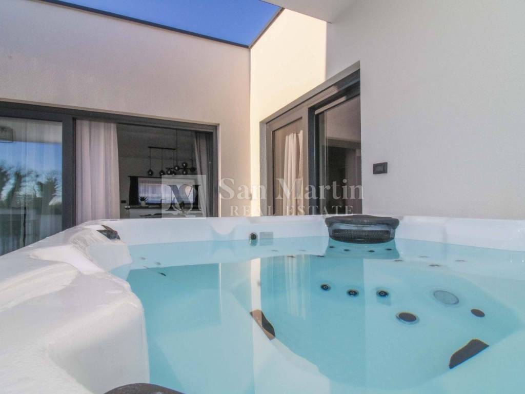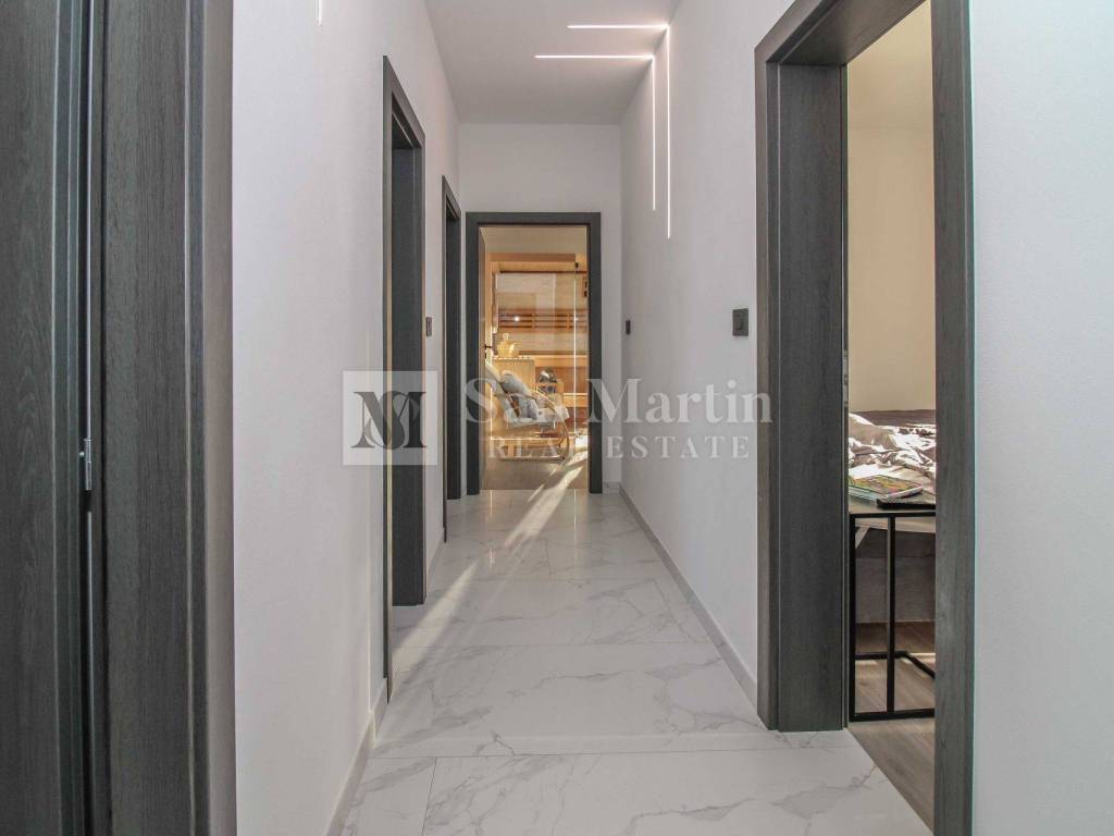 The house has three bedrooms, one of which is currently decorated as a wellness area with a gym and sauna, which gives the future owner the opportunity to adapt it to their own needs. There are also two modern bathrooms.