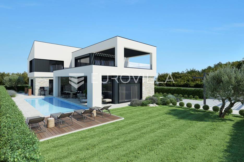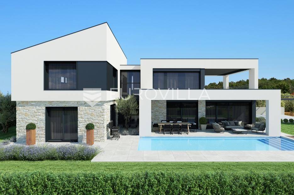 Nedaleko od grada Poreča, u mirnom i pitomom okruženju okruženom prirodom, obiteljskim kućama i kućama za odmor, nalazi se ova vrhunska vila u izgradnji s bazenom i pogledom na more. Lokacija pruža idealan spoj ruralnog ambijenta, privatnosti i blizine mora te svih urbanih sadržaja koje nudi grad Poreč. Najbliža plaža udaljena je svega 4–5 kilometara, dok je centar grada udaljen oko 5 kilometara.Ovu nekretninu, osim atraktivne lokacije, odlikuje i visoka kvaliteta gradnje koja jamči dugoročno zadovoljstvo i kvalitetu stanovanja. Vila suvremenom arhitekturom skladno prati prirodno okruženje te stvara savršenu sinergiju modernog dizajna i istarskog krajolika.Ukupna površina vile iznosi 186,55 m² te je koncipirana kao jedna stambena jedinica raspoređena na dvije etaže – prizemlje i kat.Prizemlje se sastoji od prostranog open space prostora koji objedinjuje dnevni boravak, kuhinju s otokom i blagovaonicu. Velike staklene stijene dodatno naglašavaju osjećaj prostranosti i povezuju interijer s natkrivenom terasom i vrtom. U prizemlju se također nalazi spavaća soba s vlastitom kupaonicom i walk-in garderobom, gostinjski toalet, praonica rublja te tehnička prostorija.Na katu su smještene tri luksuzne spavaće sobe, svaka s vlastitom kupaonicom i walk-in garderobom, te izlazima na prostrane privatne terase s prekrasnim pogledom na more i okolni krajolik.Okućnica je hortikulturno uređena i ograđena, a poseban ugođaj pruža grijani bazen sa slanom vodom i sunčalištem, idealan za opuštanje i uživanje na otvorenom. Vila je okružena slikovitim vinskim krajolikom te se u blizini nalaze vrhunski restorani, vinarije i razni sadržaji za aktivan odmor.Zahvaljujući svojoj lokaciji, komforu i funkcionalnom rasporedu prostorija, ova nekretnina predstavlja idealnu priliku za miran obiteljski život, ali i kao investiciju u turistički najam.Navedena cijena odnosi se na konačan stupanj izvedenosti bez namještaja, što budućem vlasniku omogućuje uređenje interijera prema vlastitim željama i preferencijama.Prodavatelj nekretnine je pravna osoba te je u navedenu cijenu uključen PDV. Kupac ne plaća porez na promet nekretnina.Za više informacija ili dogovor oko razgledavanja slobodno nas kontaktirajte.... Više na eurovilla.hr, ID: 547305