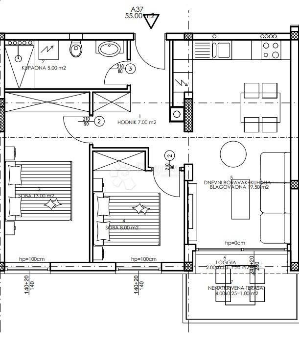 Apartamento T3 quarto andar, Veli Vrh - Industrijska zona, Pula