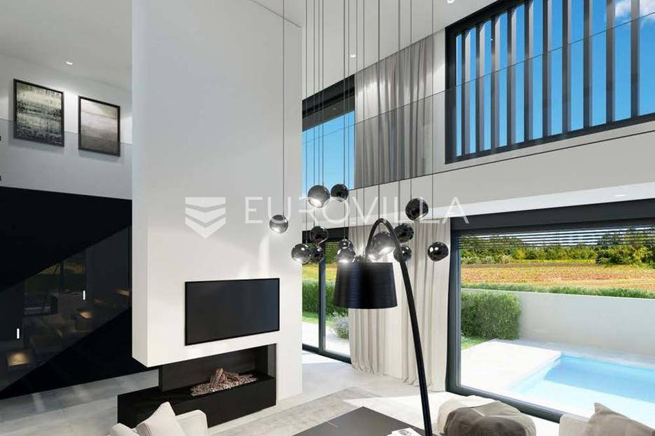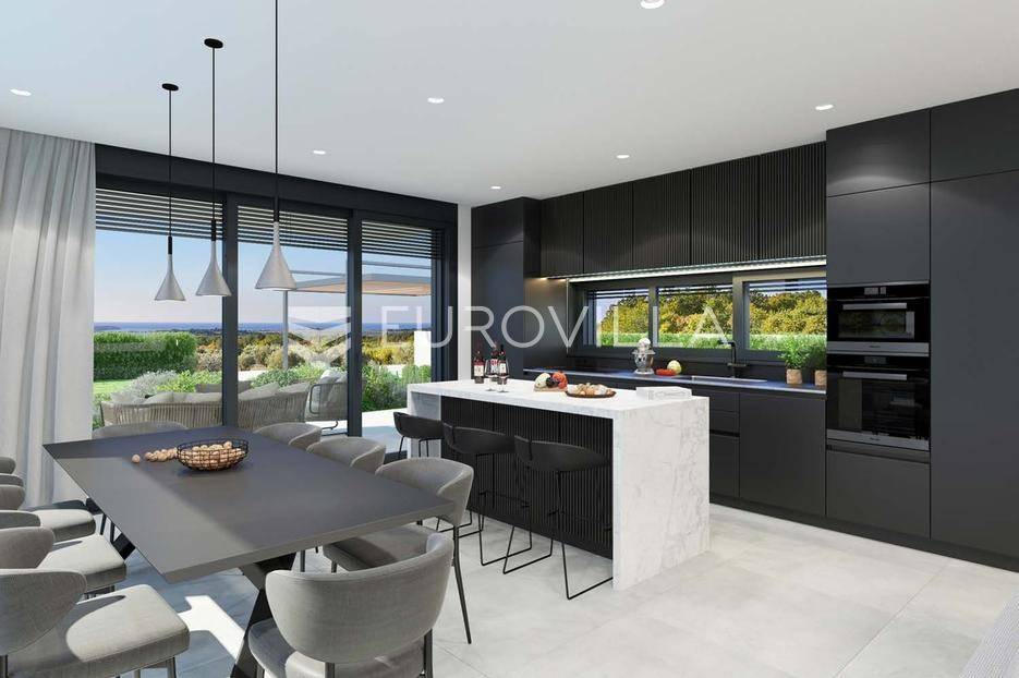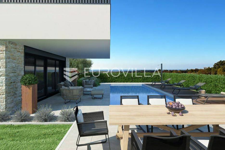 Nedaleko od grada Poreča, u mirnom i pitomom okruženju okruženom prirodom, obiteljskim kućama i kućama za odmor, nalazi se ova vrhunska vila u izgradnji s bazenom i pogledom na more. Lokacija pruža idealan spoj ruralnog ambijenta, privatnosti i blizine mora te svih urbanih sadržaja koje nudi grad Poreč. Najbliža plaža udaljena je svega 4–5 kilometara, dok je centar grada udaljen oko 5 kilometara.Ovu nekretninu, osim atraktivne lokacije, odlikuje i visoka kvaliteta gradnje koja jamči dugoročno zadovoljstvo i kvalitetu stanovanja. Vila suvremenom arhitekturom skladno prati prirodno okruženje te stvara savršenu sinergiju modernog dizajna i istarskog krajolika.Ukupna površina vile iznosi 213,64 m² te je koncipirana kao jedna stambena jedinica raspoređena na dvije etaže – prizemlje i kat.Prizemlje se sastoji od prostranog open space prostora koji objedinjuje dnevni boravak, kuhinju s otokom i blagovaonicu. Velike staklene stijene dodatno naglašavaju osjećaj prostranosti i povezuju interijer s natkrivenom terasom i vrtom. U prizemlju se također nalazi spavaća soba s vlastitom kupaonicom i walk-in garderobom, gostinjski toalet, praonica rublja te tehnička prostorija.Na katu su smještene tri luksuzne spavaće sobe, svaka s vlastitom kupaonicom i walk-in garderobom, te izlazima na prostrane privatne terase s prekrasnim pogledom na more i okolni krajolik.Okućnica je hortikulturno uređena i ograđena, a poseban ugođaj pruža grijani bazen sa slanom vodom i sunčalištem, idealan za opuštanje i uživanje na otvorenom. Vila je okružena slikovitim vinskim krajolikom te se u blizini nalaze vrhunski restorani, vinarije i razni sadržaji za aktivan odmor.Zahvaljujući svojoj lokaciji, komforu i funkcionalnom rasporedu prostorija, ova nekretnina predstavlja idealnu priliku za miran obiteljski život, ali i kao investiciju u turistički najam.Navedena cijena odnosi se na konačan stupanj izvedenosti bez namještaja, što budućem vlasniku omogućuje uređenje interijera prema vlastitim željama i preferencijama.Prodavatelj nekretnine je pravna osoba te je u navedenu cijenu uključen PDV. Kupac ne plaća porez na promet nekretnina.Za više informacija ili dogovor oko razgledavanja slobodno nas kontaktirajte.... Više na eurovilla.hr, ID: 517401