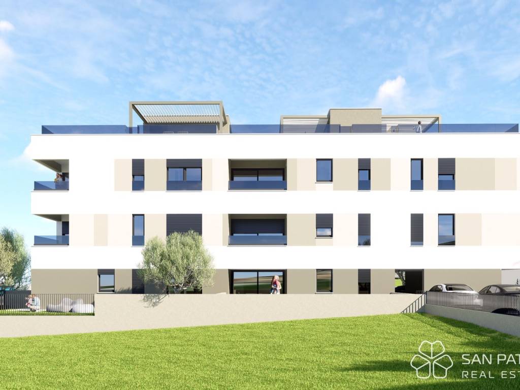 Apartments on the highest floors have private roof terraces with preparation for pergolas, summer kitchens, showers, or jacuzzis, while ground floor units have spacious gardens with native Mediterranean plants.