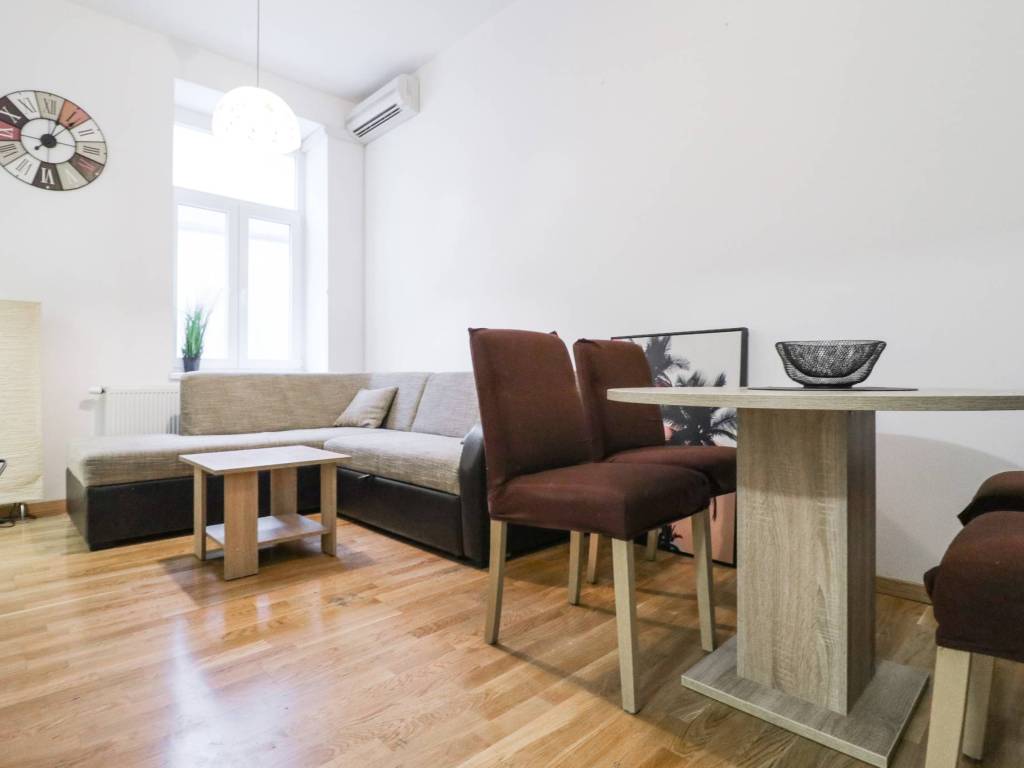 Iznajmljuje se uredan, ugodan i potpuno namješten dvosoban stan na iznimno atraktivnoj lokaciji u Kačićevoj ulici, neposredna blizina Britanskog trga.