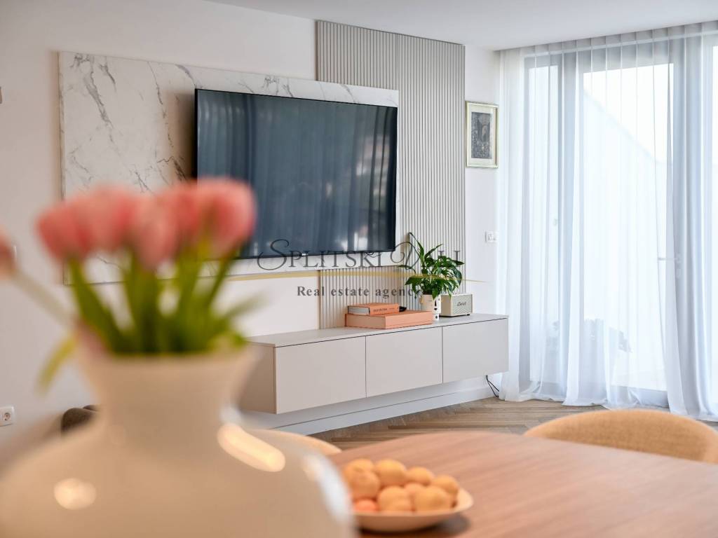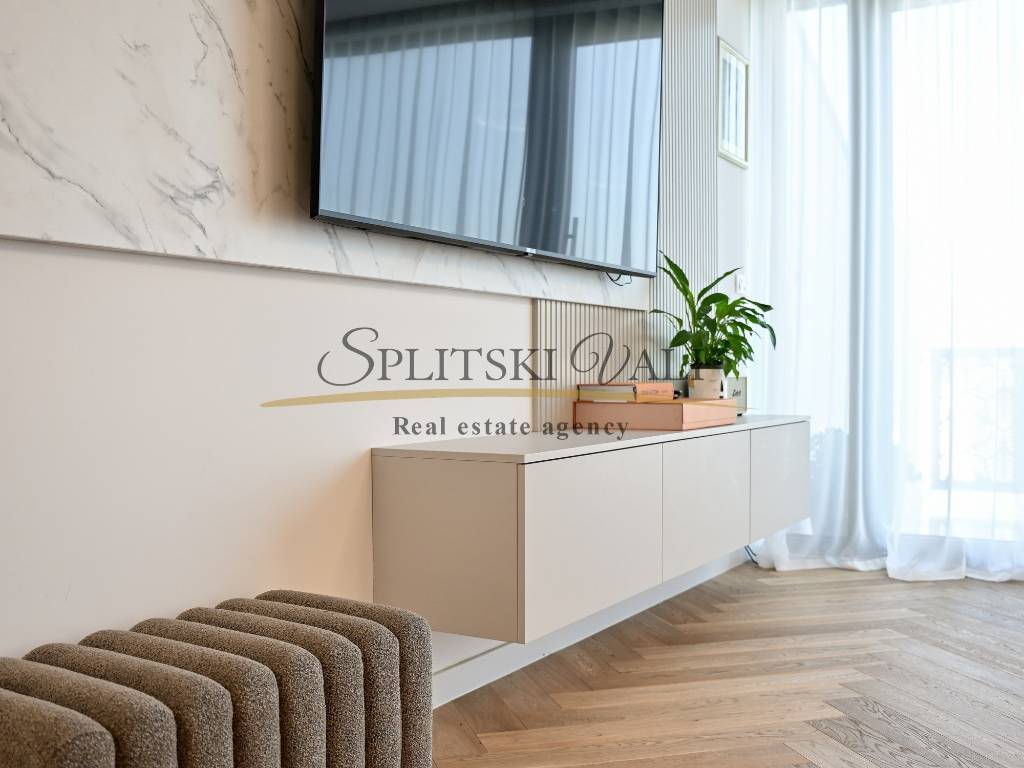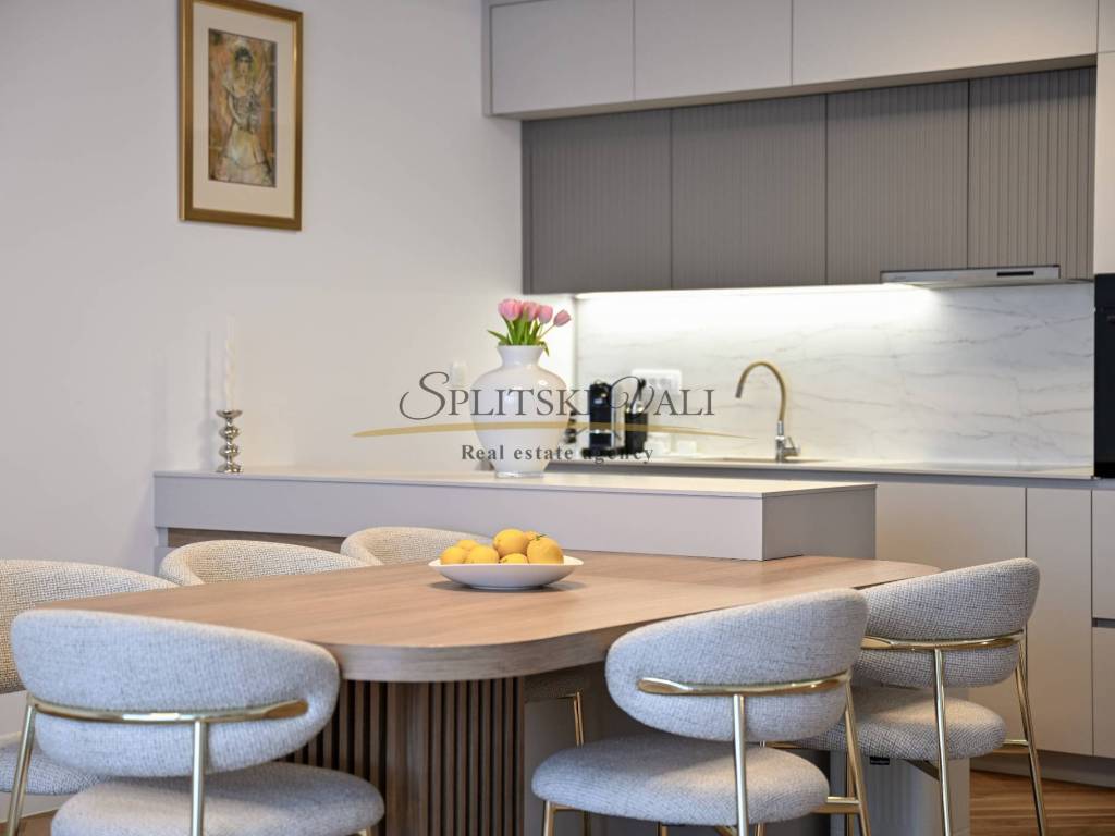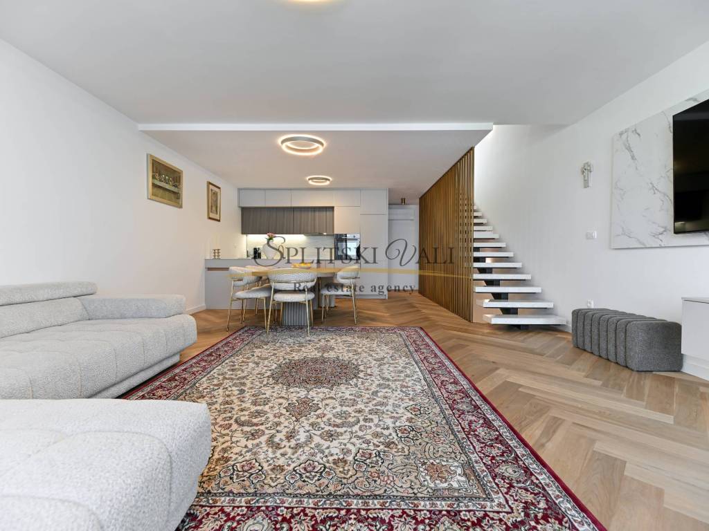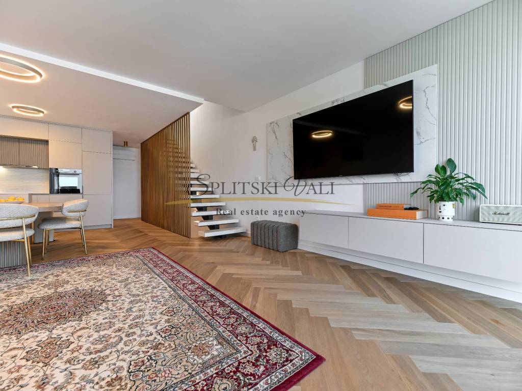 U mirnom i atraktivnom dijelu Podstrane, u moderno dizajniranoj novogradnji urbanoj vili smješten je ovaj jedinstveni dvosoban stan koji se proteže kroz četiri etaže i nudi vrhunsku kombinaciju komfora, dizajna i pogleda na more.