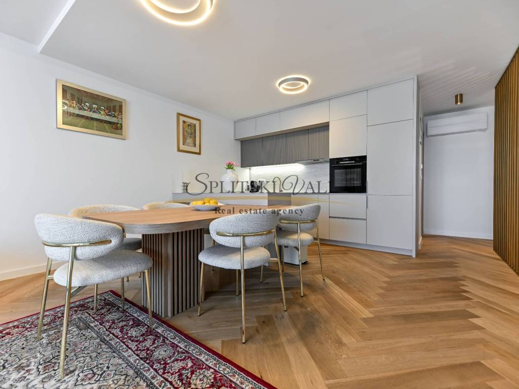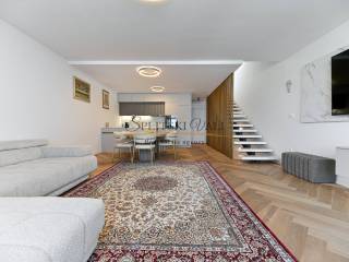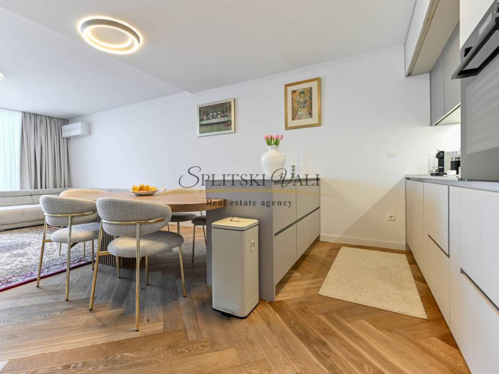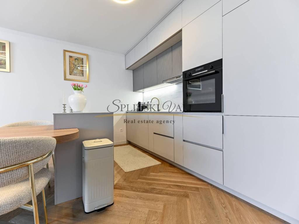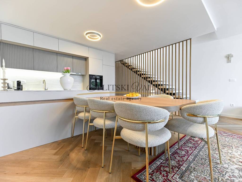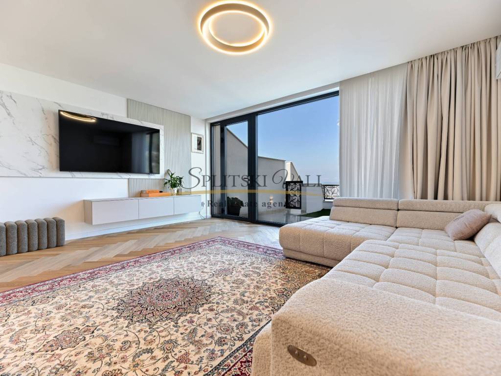 U mirnom i atraktivnom dijelu Podstrane, u moderno dizajniranoj novogradnji urbanoj vili smješten je ovaj jedinstveni dvosoban stan koji se proteže kroz četiri etaže i nudi vrhunsku kombinaciju komfora, dizajna i pogleda na more.