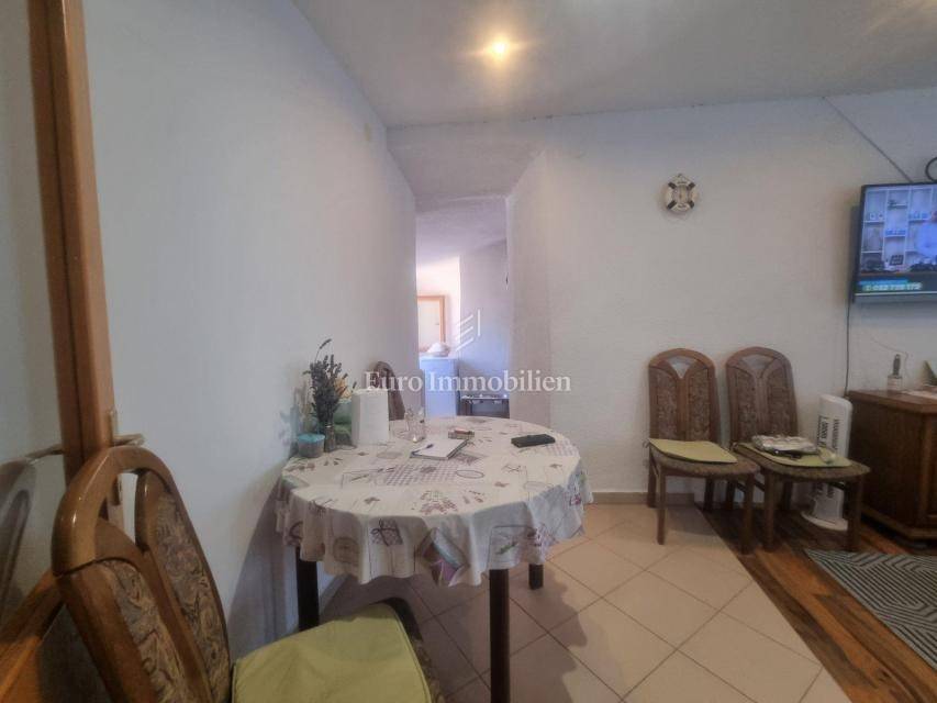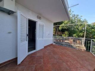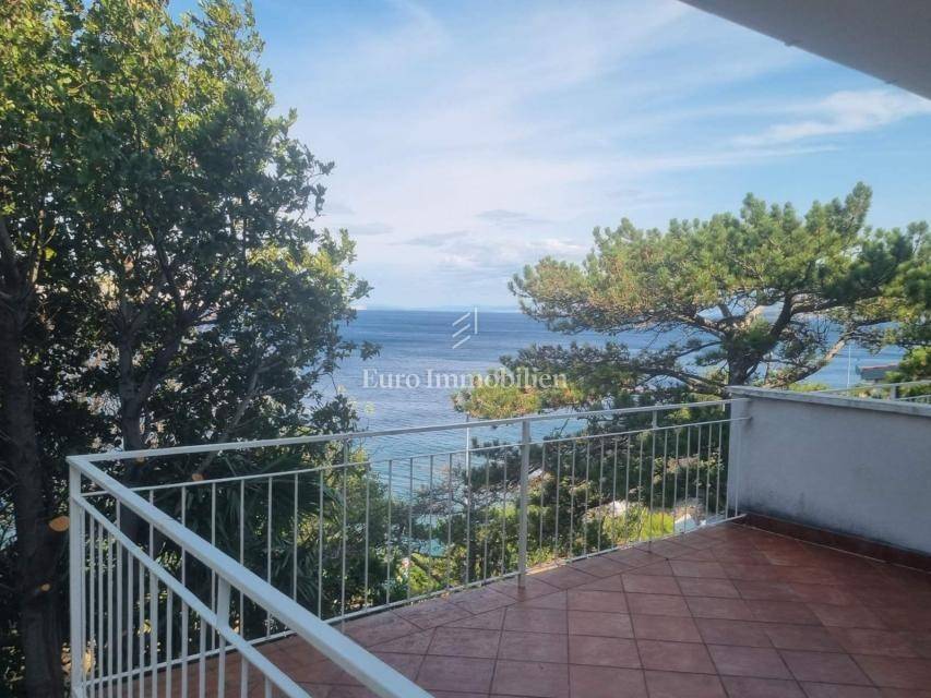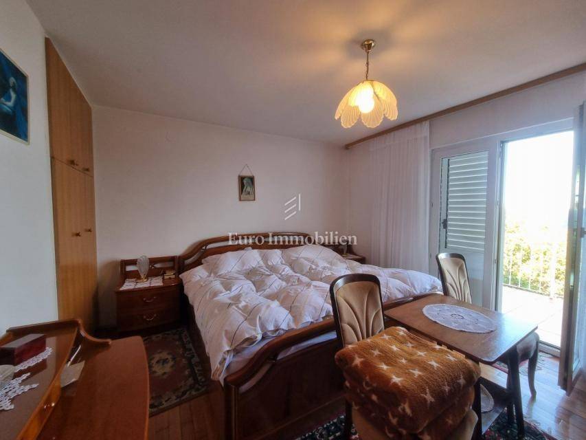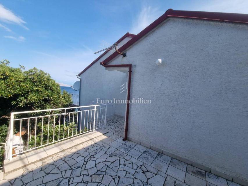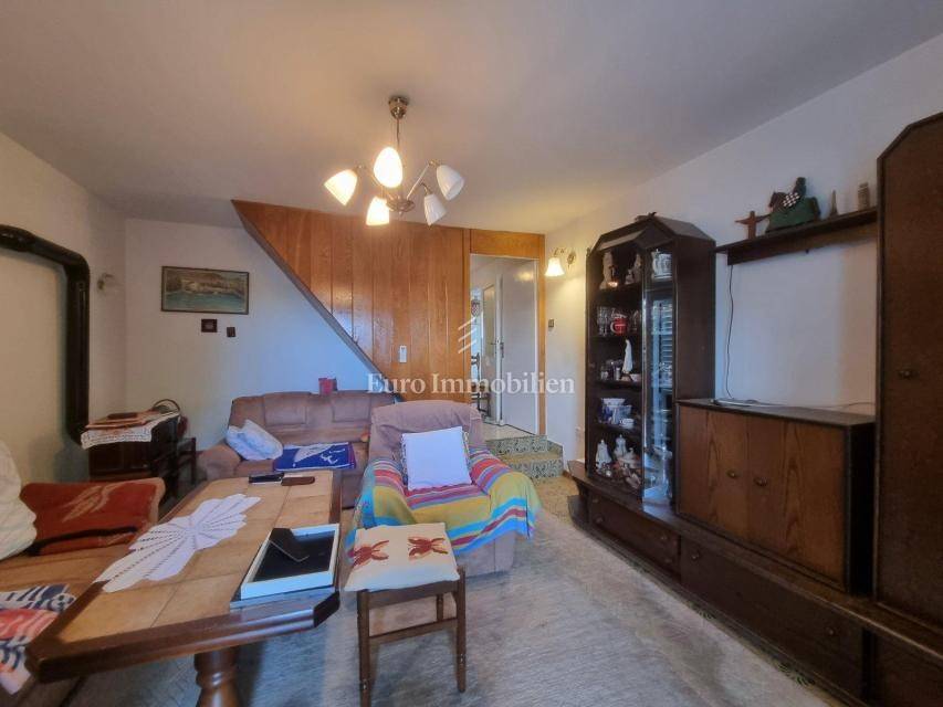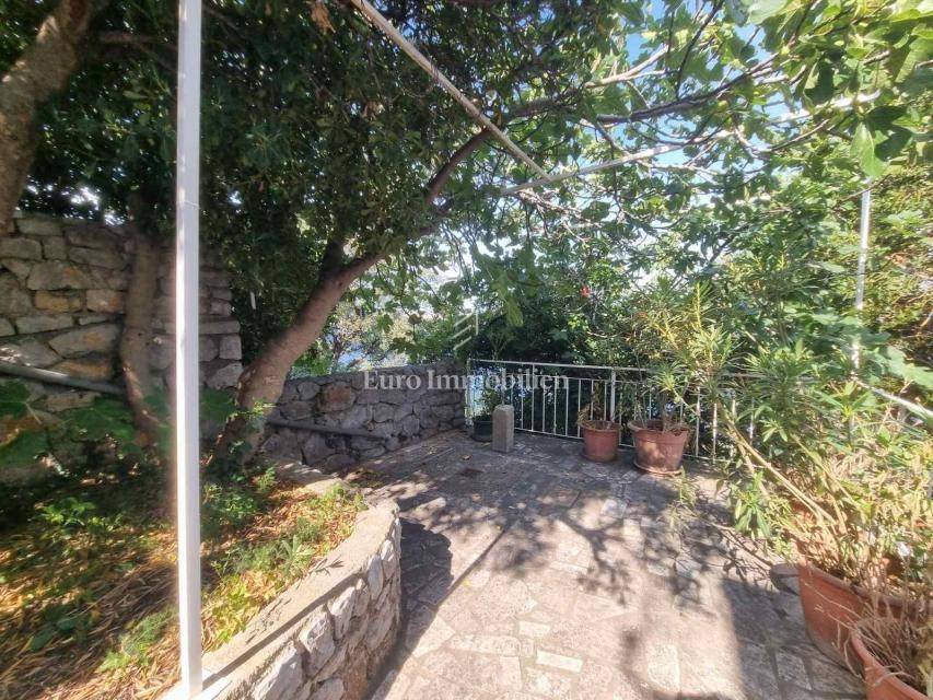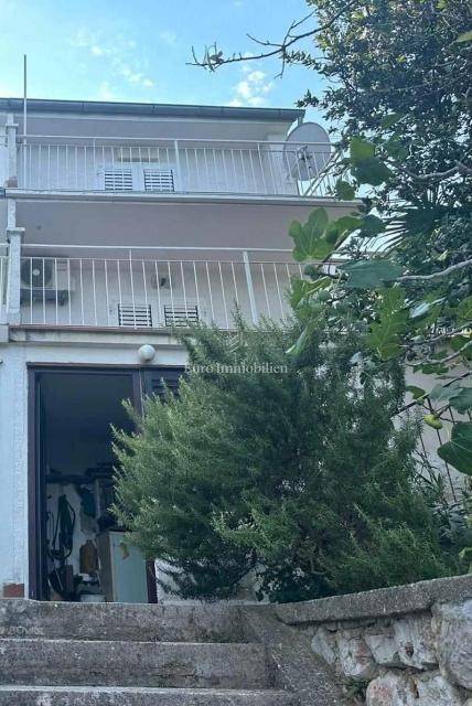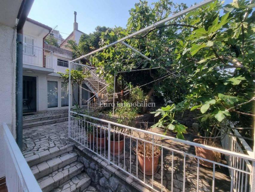 House for sale in a great location, just 90 m from the sea with a beautiful view. The house has access from two sides. There are two parking spaces at the back. The property consists of a basement in which there is a space for a laundry room and a storage room. On the ground floor there is a summer kitchen with a barbecue and a terrace, a kitchen with a dining room, a hallway, a bathroom and a living room with access to a terrace with a beautiful view of the sea. The internal stairs lead to the first floor, where there are two bedrooms, one of which has a south-facing balcony with a beautiful view, and a bathroom. As independent buildings on the plot, there is also a studio apartment, a storage and a woodshed. Inside the courtyard there is a garden and a paved terrace. Ideal for rest and enjoyment and for tourist rental.