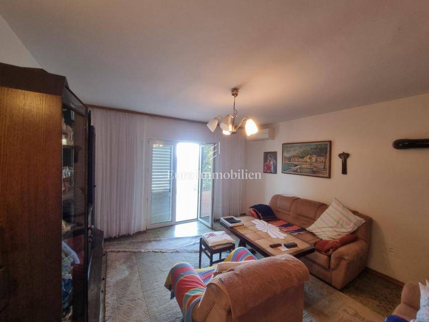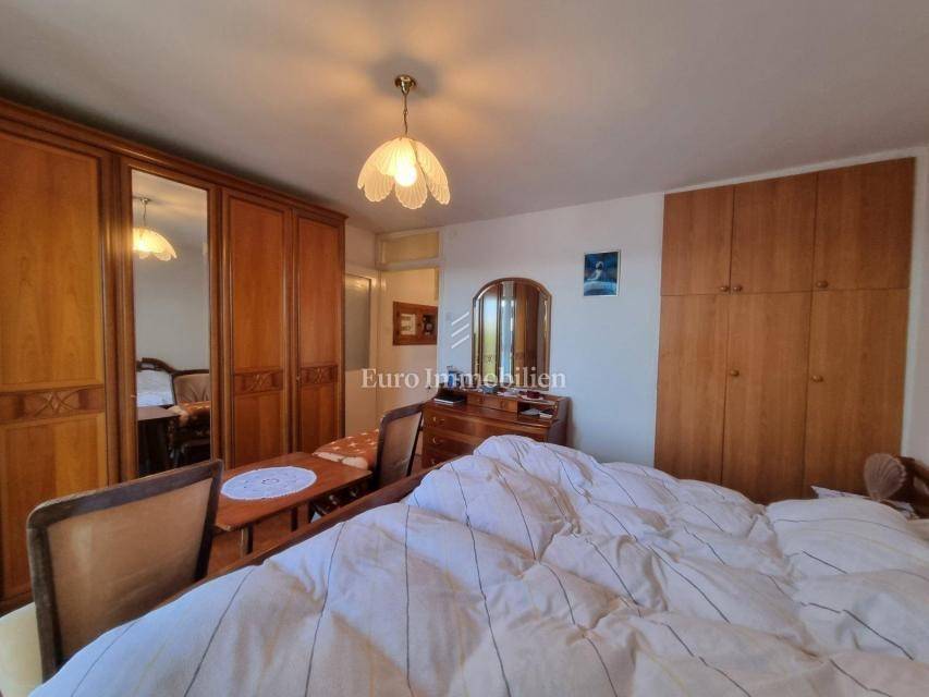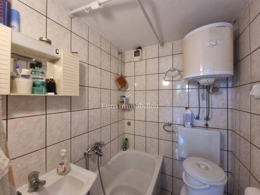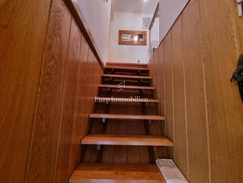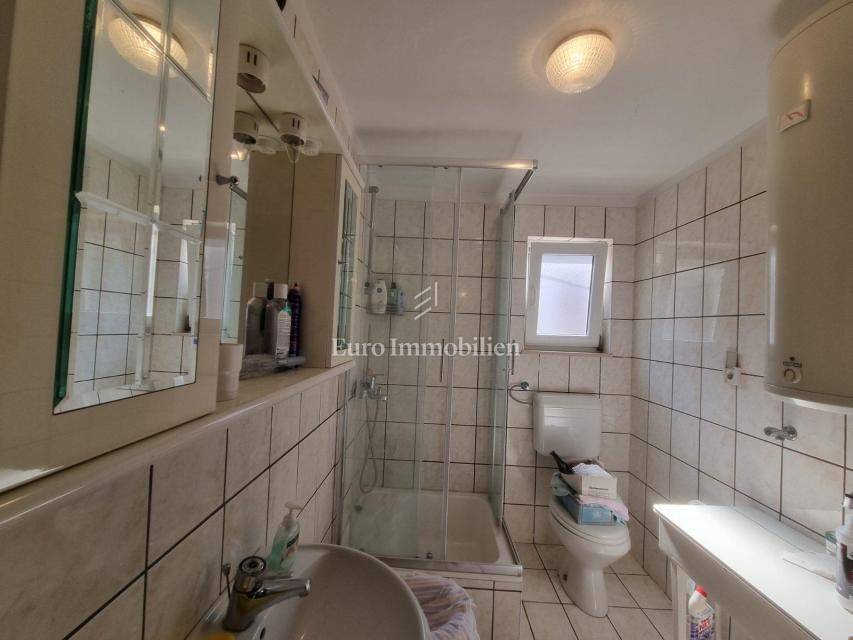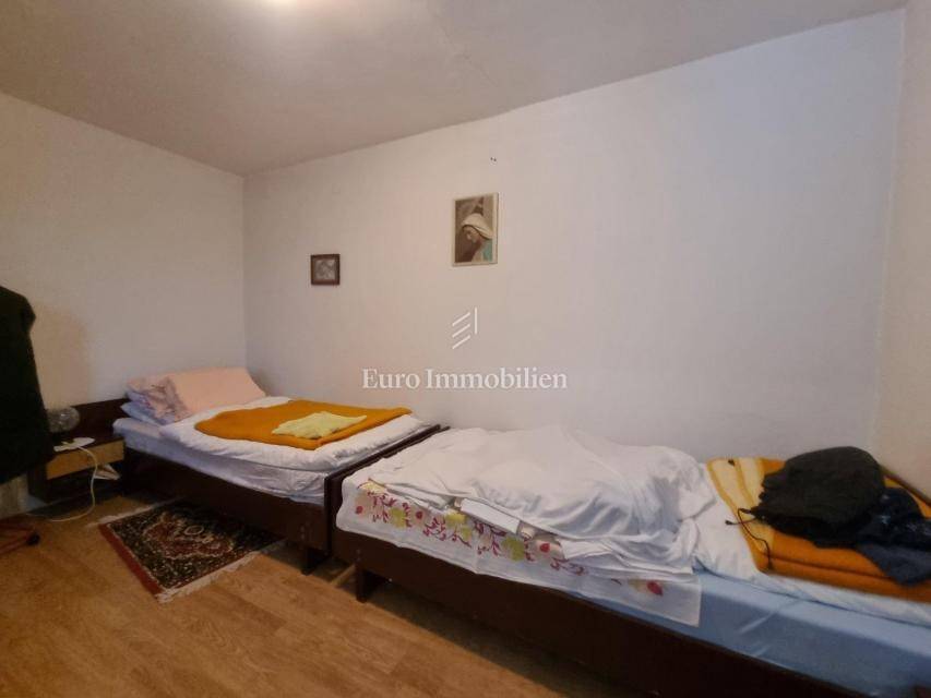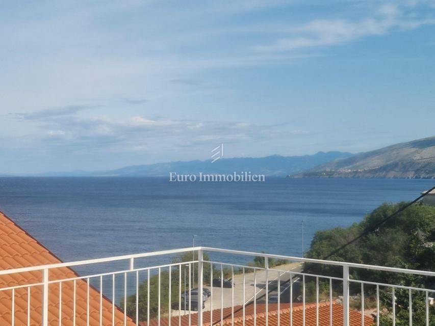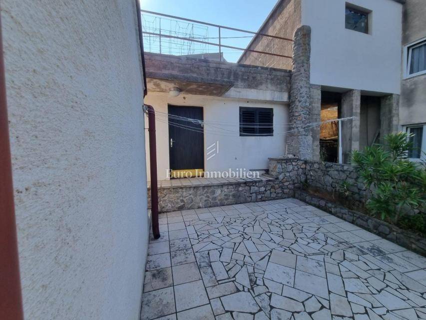 House for sale in a great location, just 90 m from the sea with a beautiful view. The house has access from two sides. There are two parking spaces at the back. The property consists of a basement in which there is a space for a laundry room and a storage room. On the ground floor there is a summer kitchen with a barbecue and a terrace, a kitchen with a dining room, a hallway, a bathroom and a living room with access to a terrace with a beautiful view of the sea. The internal stairs lead to the first floor, where there are two bedrooms, one of which has a south-facing balcony with a beautiful view, and a bathroom. As independent buildings on the plot, there is also a studio apartment, a storage and a woodshed. Inside the courtyard there is a garden and a paved terrace. Ideal for rest and enjoyment and for tourist rental.
