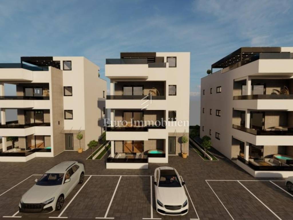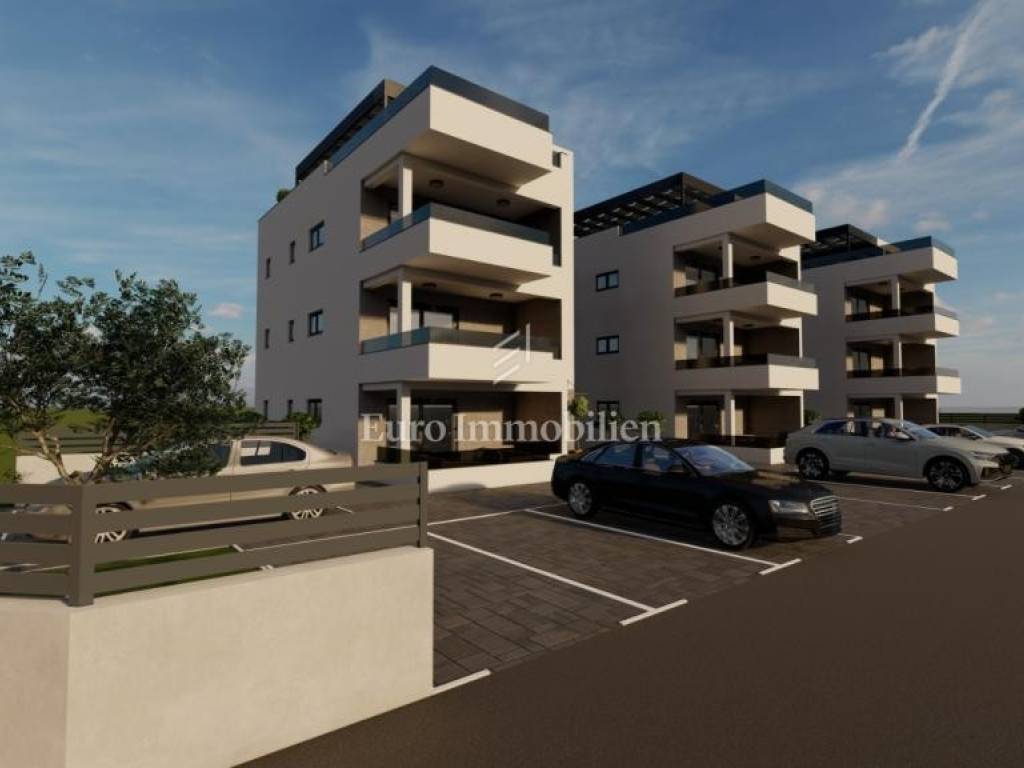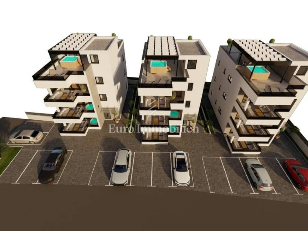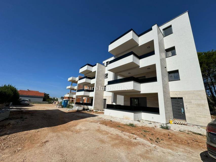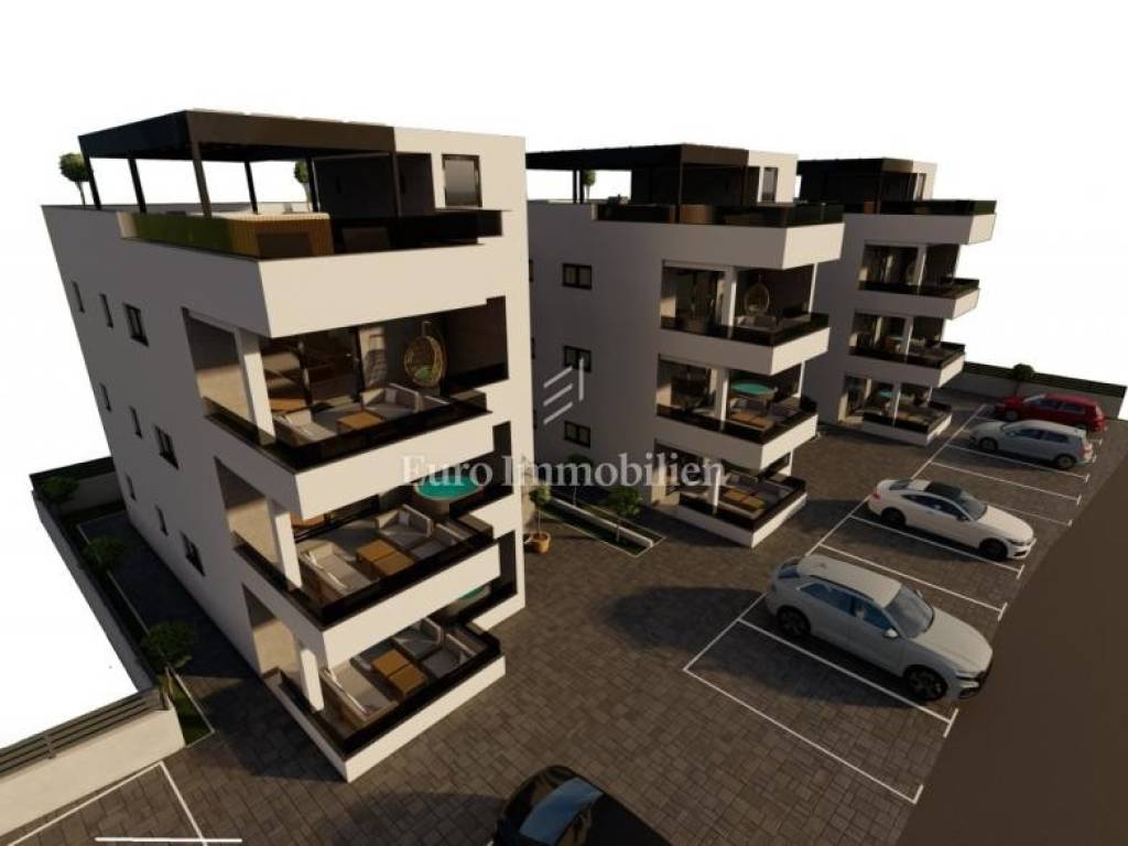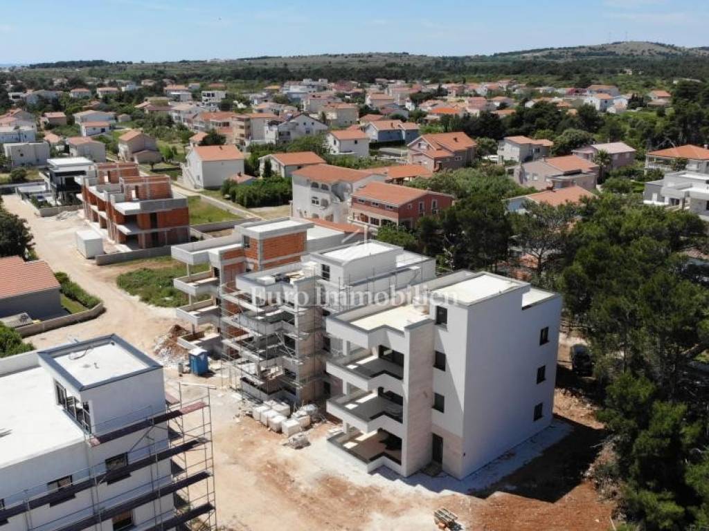 APARTMENTS for sale in newly built residential buildings on the island of Vir. The buildings are located in a quiet and dead-end street in the very center of Vir, near the main city beach, Jadro. Each building has 3 residential units - one apartment per floor. The property extends to the ground floor and the 1st and 2nd floors.