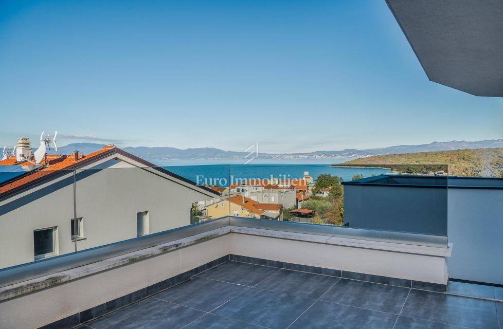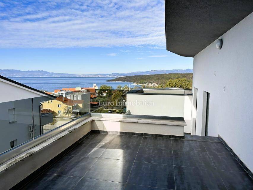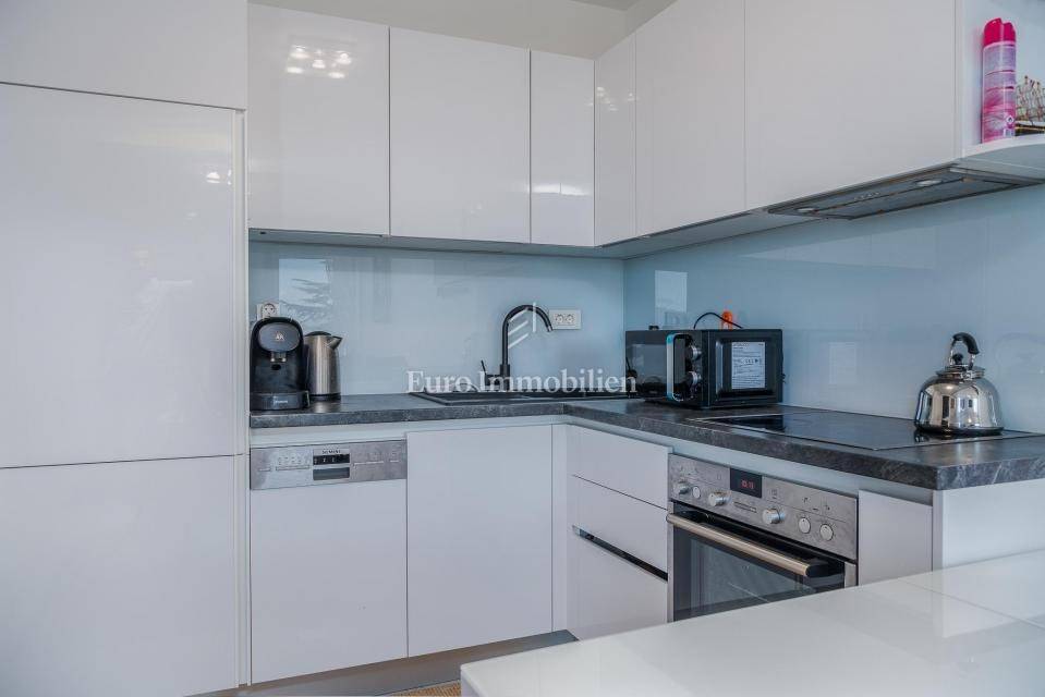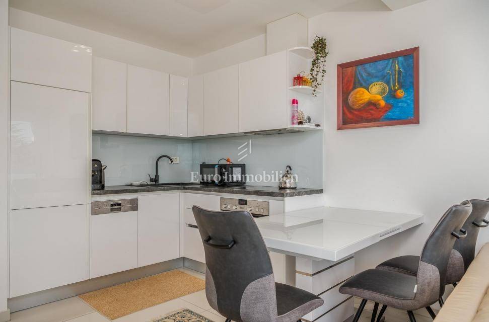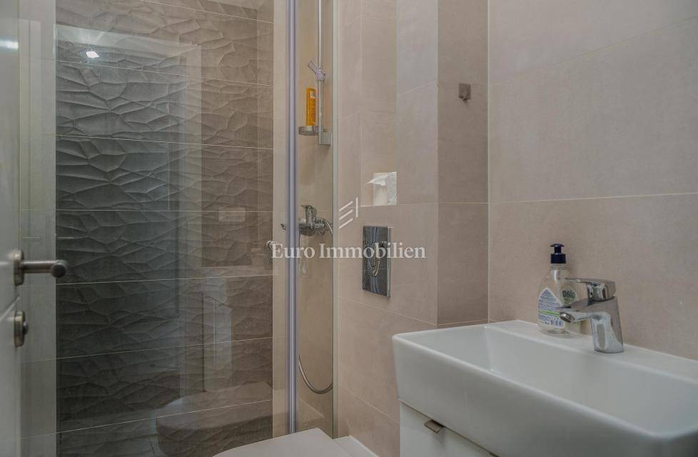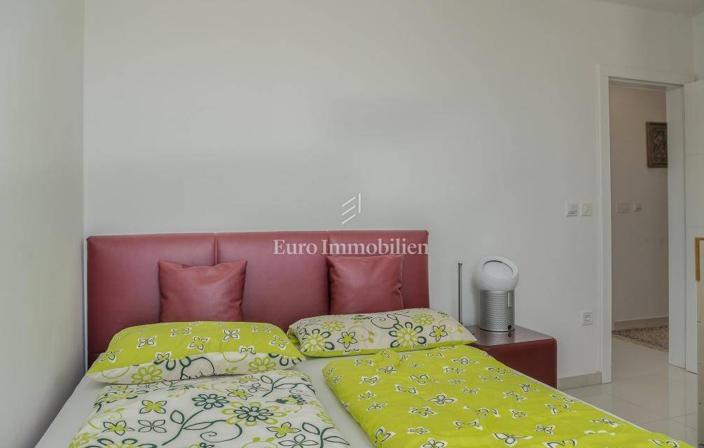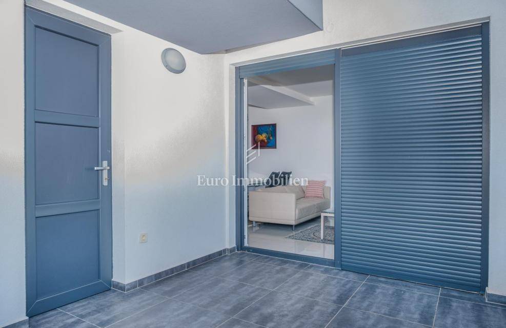 In nature, these are two apartments with a total area of 110.34 m2. The larger one is on the second floor, while the studio apartment is on the mezzanine below. They are connected by outdoor terraces with a fantastic view of the sea. The larger apartment consists of two bedrooms, bathroom, kitchen, storage room, living room and dining room in one unit with access to the terrace. The studio apartment consists of a kitchen, bathroom, dining room and living room, from which there is access to a large terrace. There is a storage room on the terrace, which is suitable for storing things. Both apartments have a lot of daylight and a view of the sea from every room. Underfloor heating is installed in all rooms. The entrances to the apartments are separate, and there is also the possibility to separate the terraces. The building was built and equipped with high-quality materials in 2018. The advantage is that nothing can be built in front of the building, so the view of the sea remains unobstructed. The apartment has one parking space.