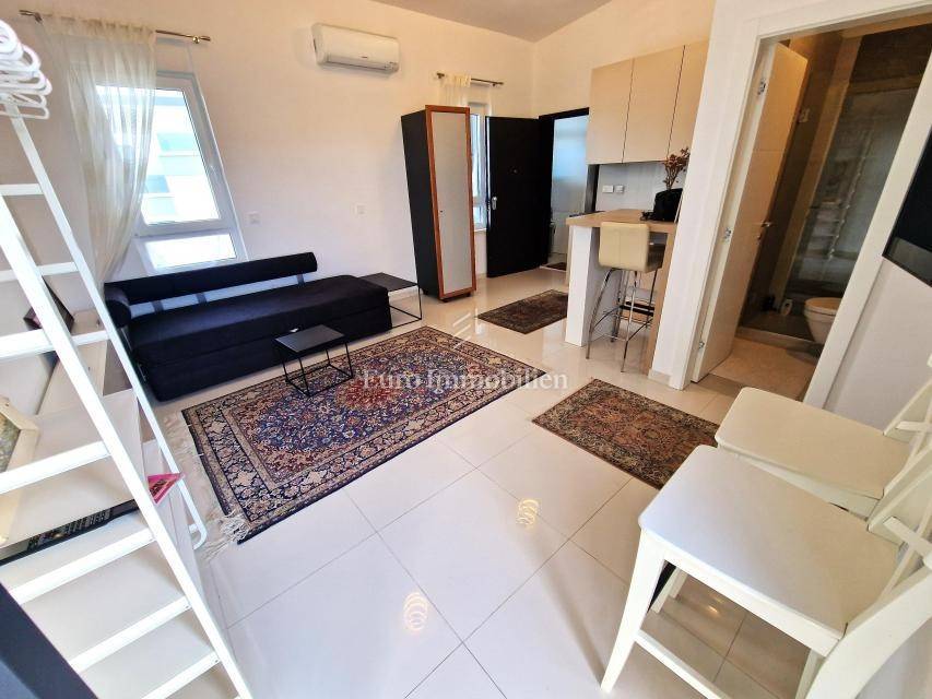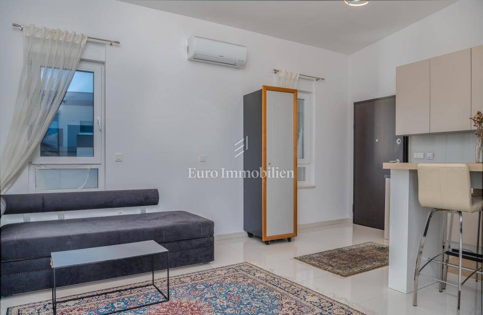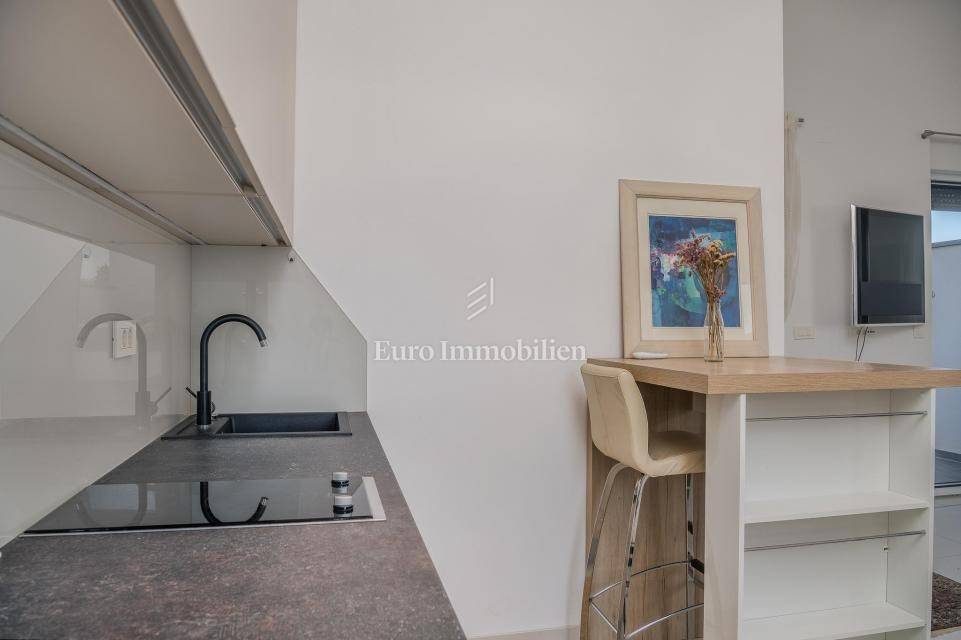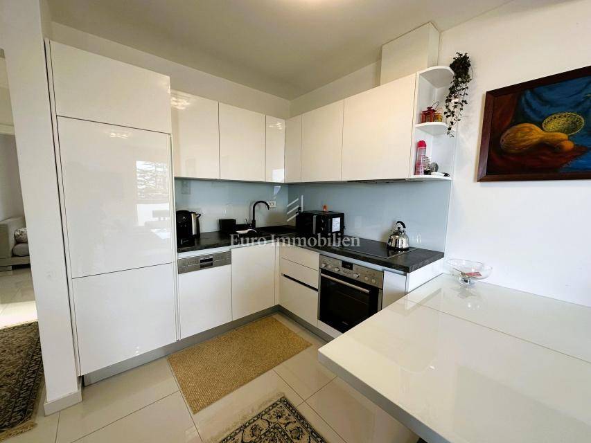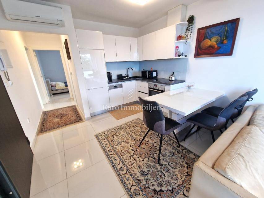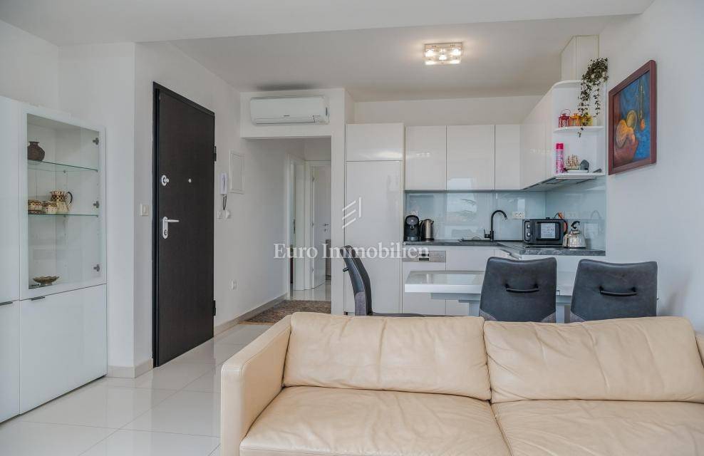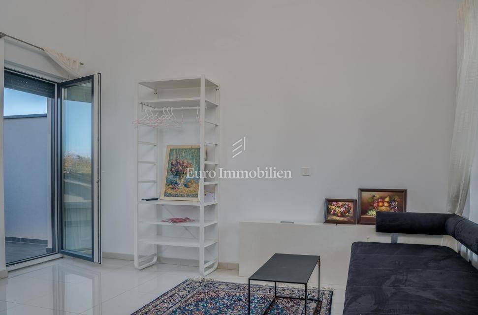 In nature, these are two apartments with a total area of 110.34 m2. The larger one is on the second floor, while the studio apartment is on the mezzanine below. They are connected by outdoor terraces with a fantastic view of the sea. The larger apartment consists of two bedrooms, bathroom, kitchen, storage room, living room and dining room in one unit with access to the terrace. The studio apartment consists of a kitchen, bathroom, dining room and living room, from which there is access to a large terrace. There is a storage room on the terrace, which is suitable for storing things. Both apartments have a lot of daylight and a view of the sea from every room. Underfloor heating is installed in all rooms. The entrances to the apartments are separate, and there is also the possibility to separate the terraces. The building was built and equipped with high-quality materials in 2018. The advantage is that nothing can be built in front of the building, so the view of the sea remains unobstructed. The apartment has one parking space.