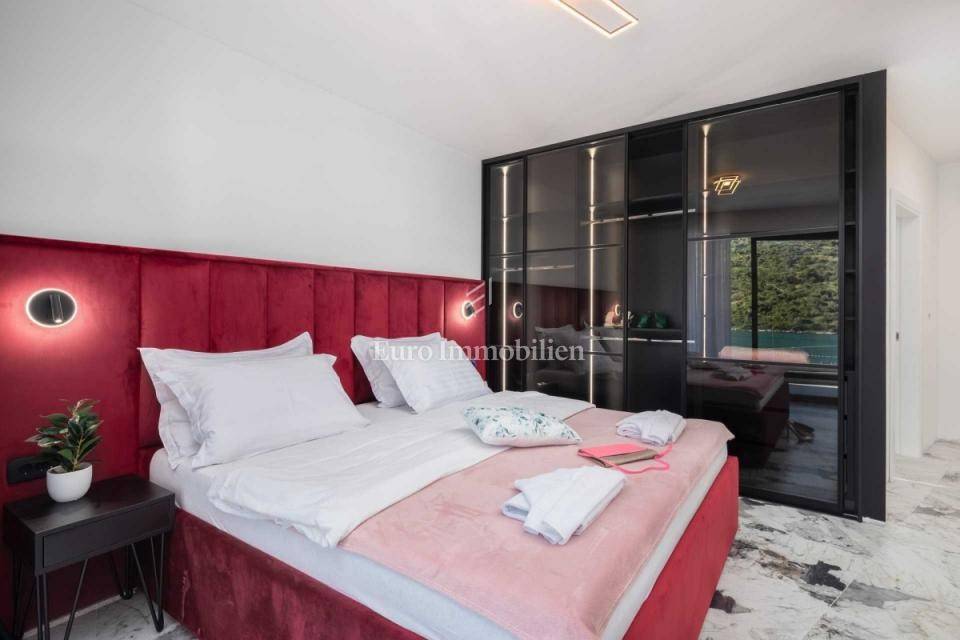 The house was completed in 2024 and has served for a few weeks as a tourist rental, for which it has great potential due to its microlocation and the amenities. It consists of 4 bedrooms, each with its own bathroom and loggia, with one bedroom located on the ground floor and the remaining three on the first floor.