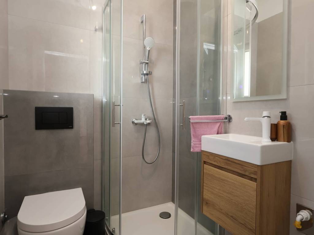 A special value of this apartment is the underfloor heating system and heat pump, which ensure a comfortable temperature throughout the year and energy efficiency. For additional comfort, two air conditioning units are installed, and video surveillance provides a high level of security. The apartment also has a chimney, allowing for the installation of a fireplace, wood stove, or pellet stove to create a cozy atmosphere during the winter months.