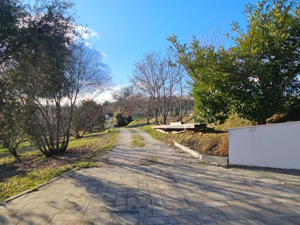 Ispred kuće nalazi se 360 m2 popločanog parkirališta, kao i uređene terase i nogostupi oko kuće te put koji vodi do ulaza u stanciju sa kliznom kapijom.