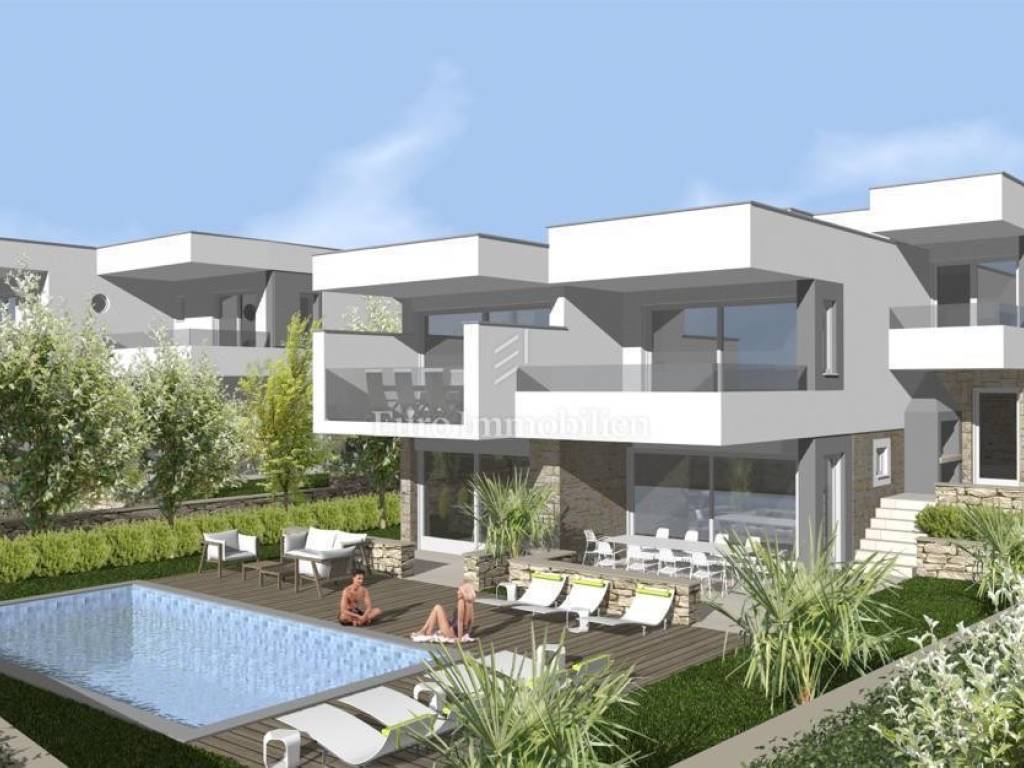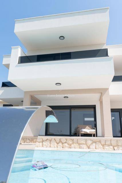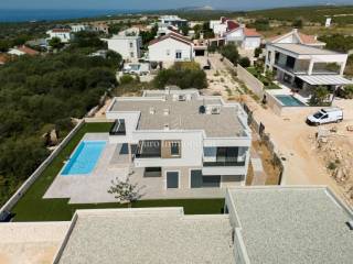 Two houses with a swimming pool are for sale in a new building in Novalja, in the area of Škuncini stani. The properties are spread over the ground floor and the 1st floor.