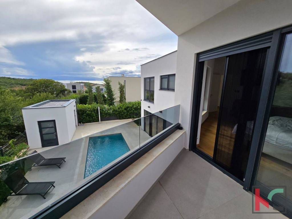 Kuća se sastoji od ulaznog hodnika, konfornog dnevnog boravka joji je staklenom stijenom povezan sa vanjskom terasom, kuhinjom i blagovaonom, kupatilom i tehničkom sobom u prizemlju. Na katu su smještene 3 spavaće sobe, svaka sa svojim kupatilom i natkrivena terasa.